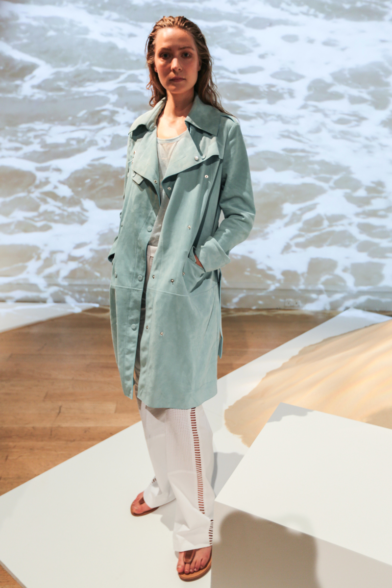 For SS16, Belstaff’s womenswear designer Delphine Ninous wanted to take the label in a slightly different direction, whilst still staying true to the brand’s biker and military heritage. She looked to the beauty inherent in some of nature’s greatest forces, particularly the sea, for inspiration, using that dichotomy to build a collection that offered a unique meditation of femininity.