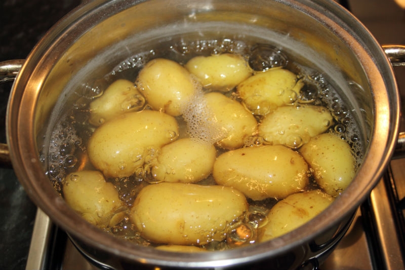 6. As soon as you’ve put the chicken in the oven, place the potatoes in salted water and boil for 20 minutes.