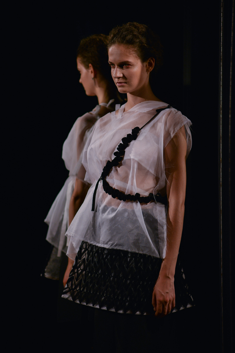 With the precision of a fine surgeon, Phoebe English expertly brought together these disrupted textures, layering the body with ease in order to produce a beautiful collection of exquisitely reconstructed outfits.
