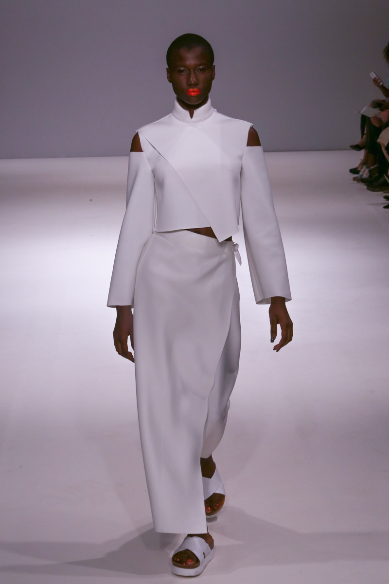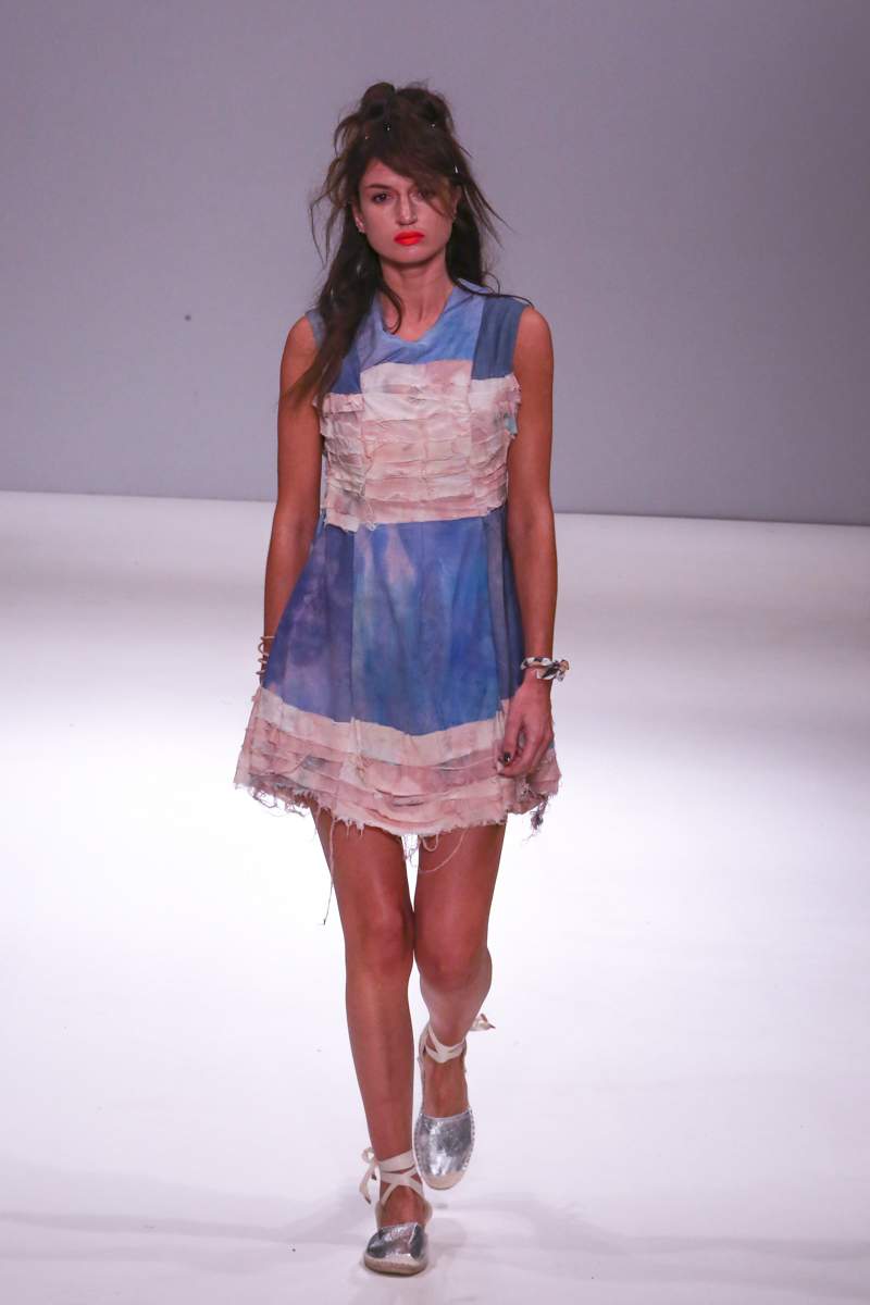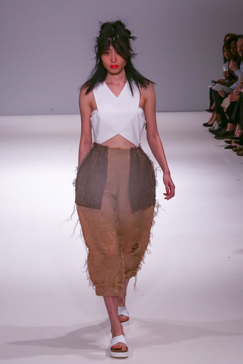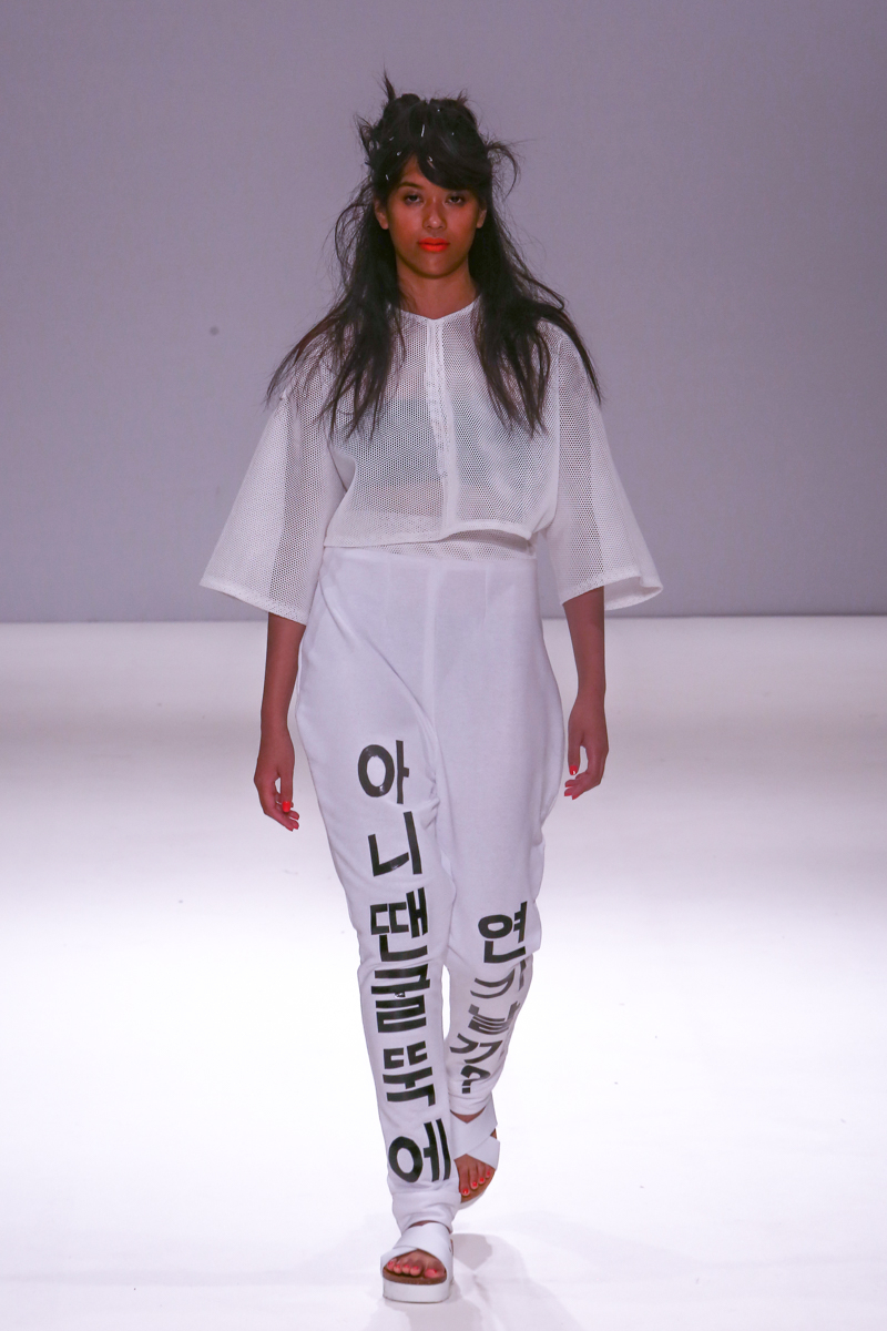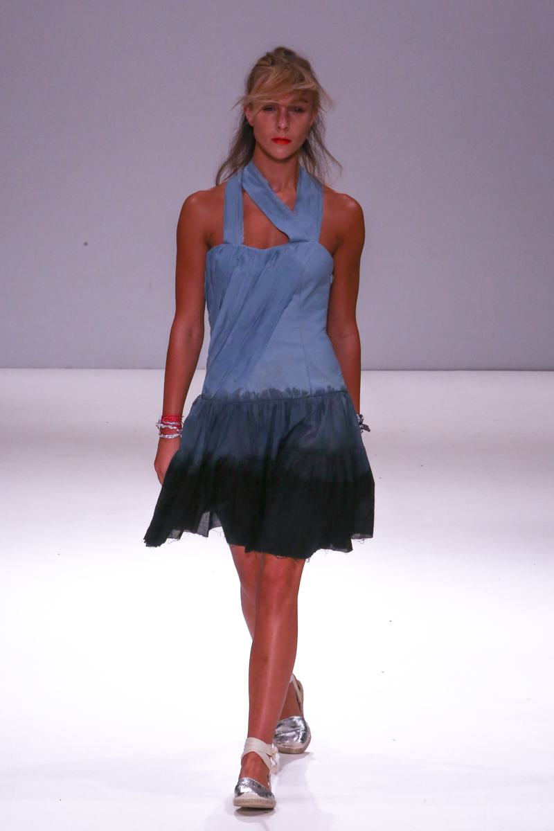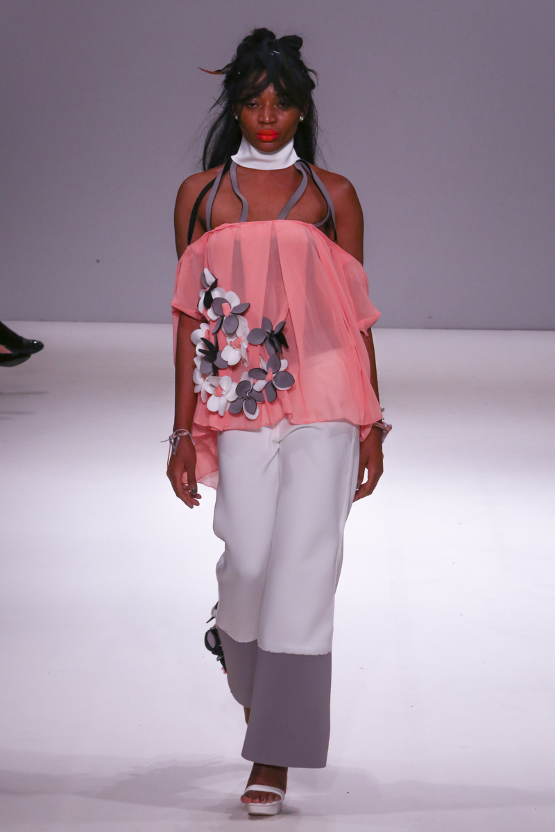 Anakin Telle Nakata impressed judges with an amorphous, navy and black dress with cut-out shoulders and asymmetric hemline, earning her the Technical Excellence award. The unusual design tapped into the current trend for sporty, urban pieces, capturing the sartorial zeitgeist whilst demonstrating a flare for fabric manipulation.