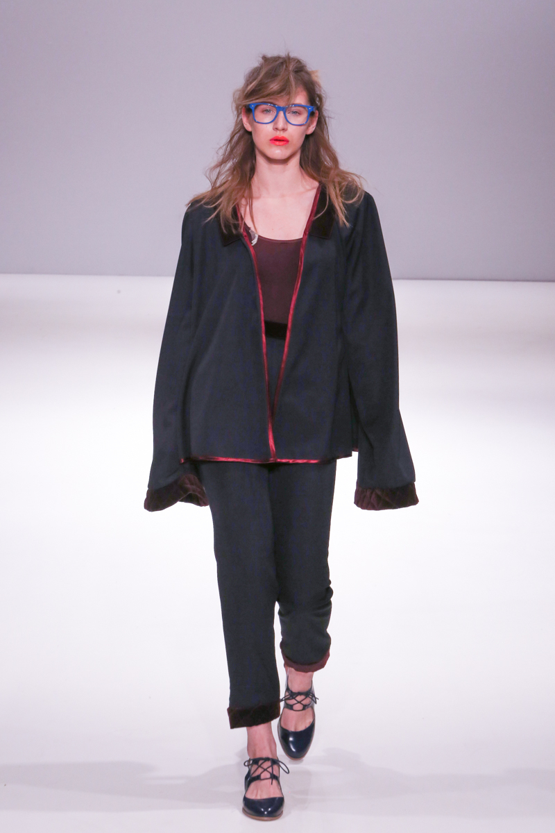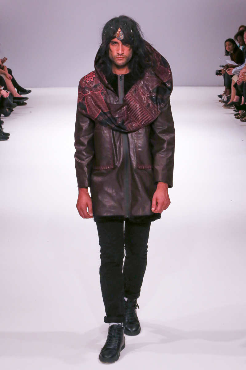 After being presented with the finalist’s incredibly strong, varied collections, the awards were presented. The first, for Directional Outerwear, went to David Bennie, who created a rich, maroon-hued leather jacket with a high collar and patterned lapels that somehow morphed into a chunky scarf. It was an incredibly strong, unique design and it’s not difficult to imagine it selling well on the high street.