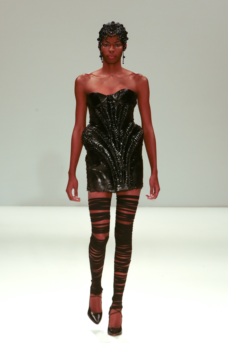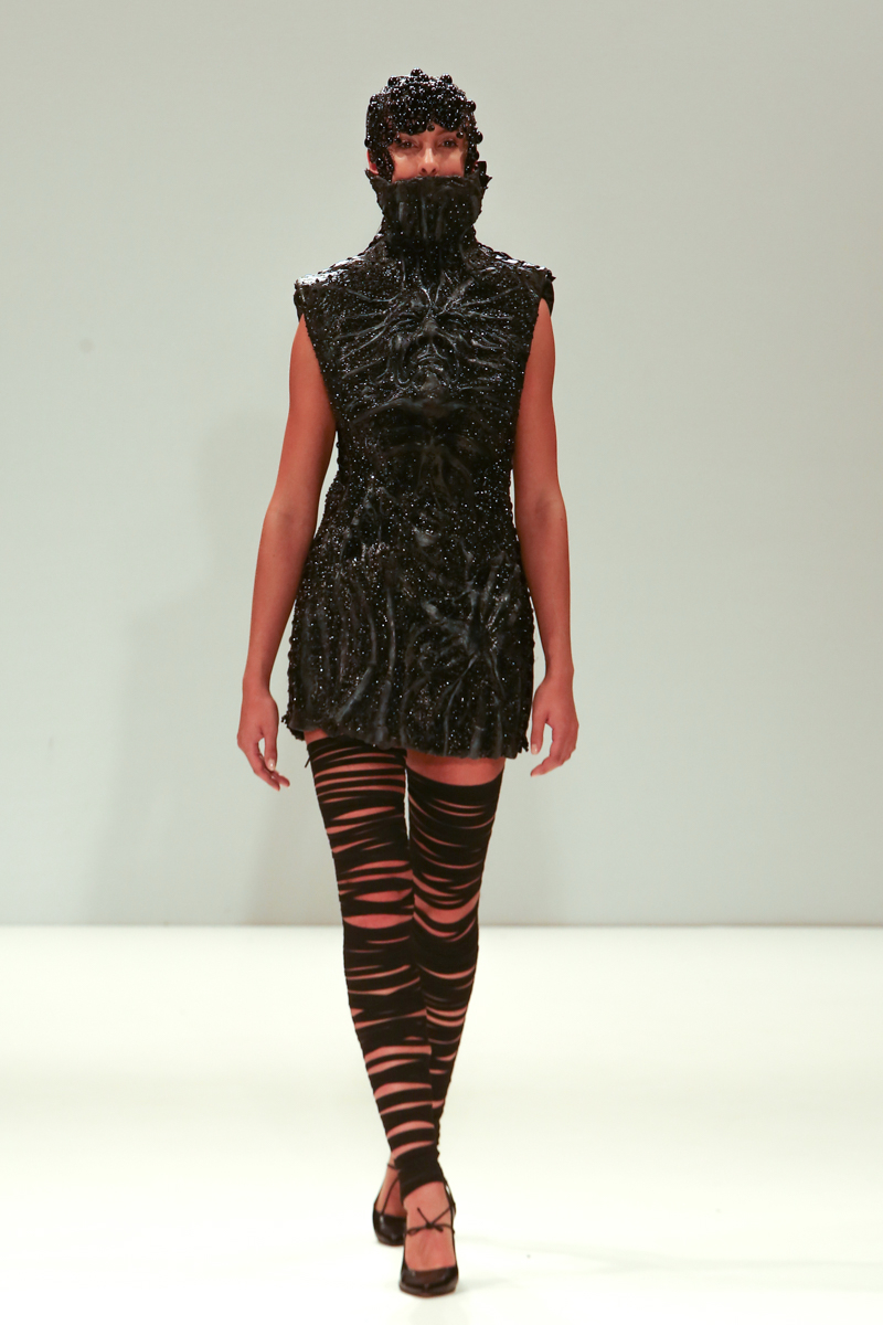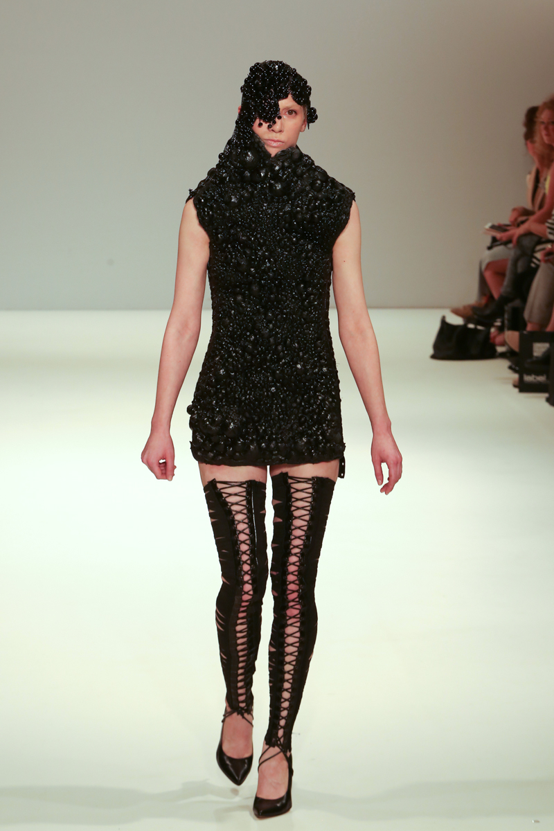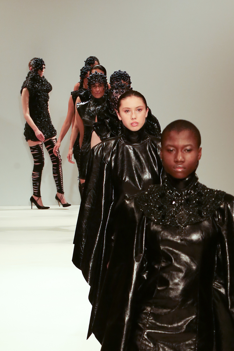 Marko Mitanovski presented a striking spring/summer 2016 collection at Freemasons’ Hall for London Fashion Week. The new looks were dramatic featuring a lot of black and embellishment. Here are our images from the show.