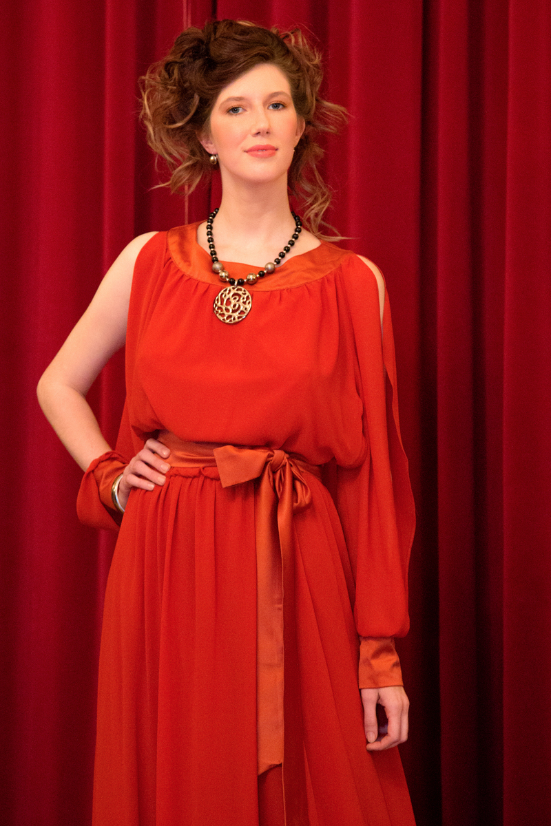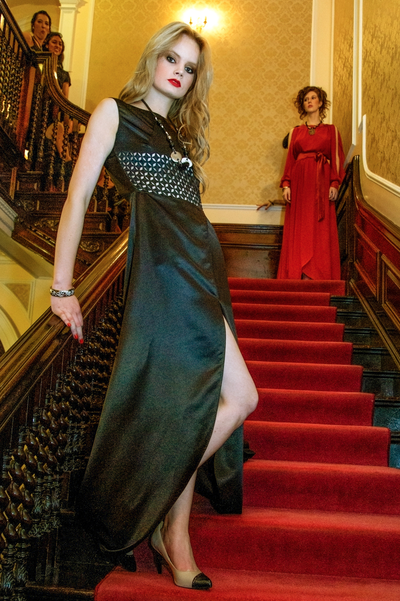 These exquisite jewels worked perfectly in tandem with the gowns presented by Elysian. This is the first showcase of the Hungarian label at London Fashion Week. The label was launched three years ago by Boglarka Bodis; named as an ode to the Elysian Fields, a place in Greek mythology where Gods sent their heroes to rest. The long-flowing gowns in the finest sumptuous ivory, black and rust orange silks, with tulip cut and circular hemlines, and trains trailing elegantly behind these debutante, Hungarian princesses.