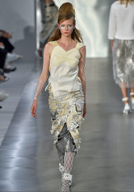 Although referred to by Galliano himself as Sci-Fi Lo-Fi, the Maison Margiela spring/summer 2016 collection was set deep in nostalgia. Not the futuristic silver make-up painted across the models eyes, nor the men modelling dresses and fishnets, were enough to deter the eccentric vintage feeling imprinted into this collection.