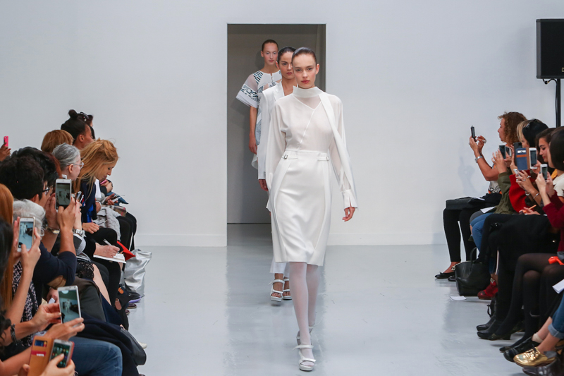 Vassily presented a tonal spring/summer 2016 collection at Espace Commines for Paris Fashion Week. The new looks were sleek a tonal designs with whites and blacks dominating the fabric. Here are our images from the show.