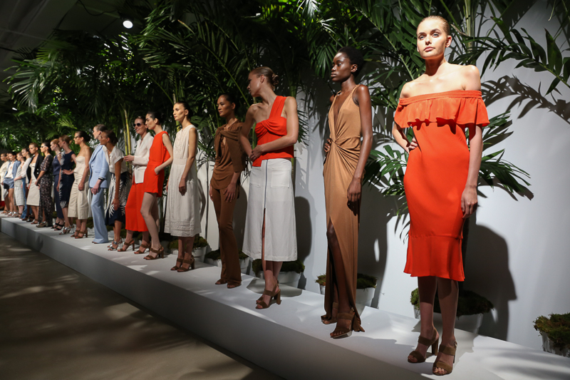 Veronica Beard presented a tropical spring/summer 2016 collection at Venue 57 for New York Fashion Week. The new looks were filled with resort-like prints and island-inspired outfits. Here are our images from the show.