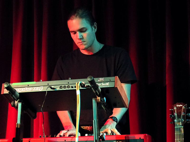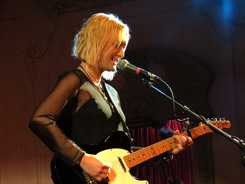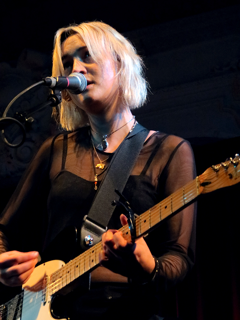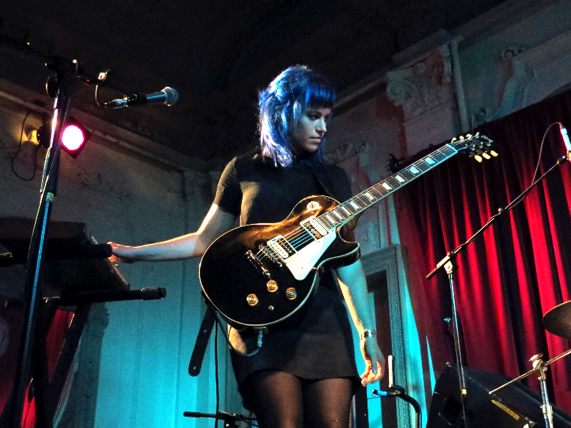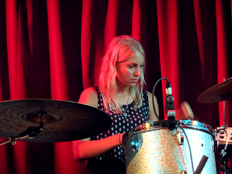 Hunter’s playing is almost virtuosic. Shoehorned between a keyboard and a stack of amps, so pushed for space that any leg movement threatens to knock her kit apart, she almost steals the show, playing a series of varied and inventive parts. Thunderous mallets lend weight to Home, while skeletal rimshots quietly underpin delicate set highlight Dust. Hunter’s professionalism visibly calms her (half-)bandmates, who smile gratefully at her after each faultless performance.