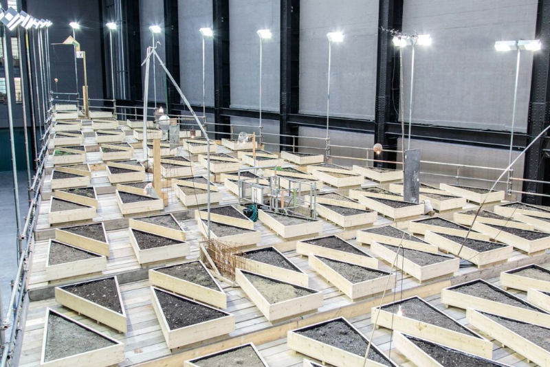 This is part of the Hyundai Commission with the Tate Modern which is a testament to their belief that technology and creativity go hand in hand with one another. A “scaffolding of ideas”, as described by Cruzvillegas, where the piece continuously builds upon itself over time. The plots will be watered regularly and lit with lamps constructed from found objects.