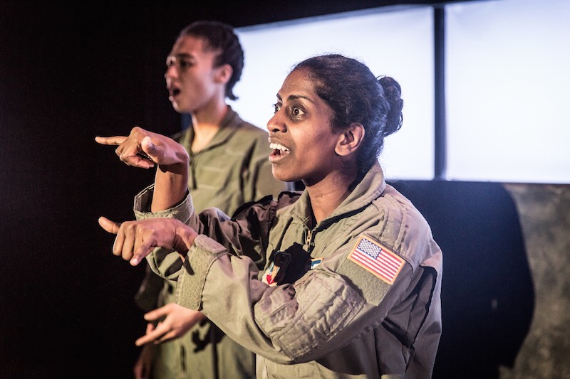 Monologues are often employed by playwrights to express a character’s want – a strong, unwavering want. For the pilot in Grounded, a fascinating production by Deafinitely Theatre, it is an unwavering want to fly in a beguiling monologue.