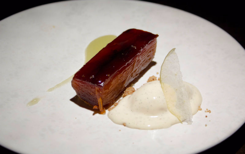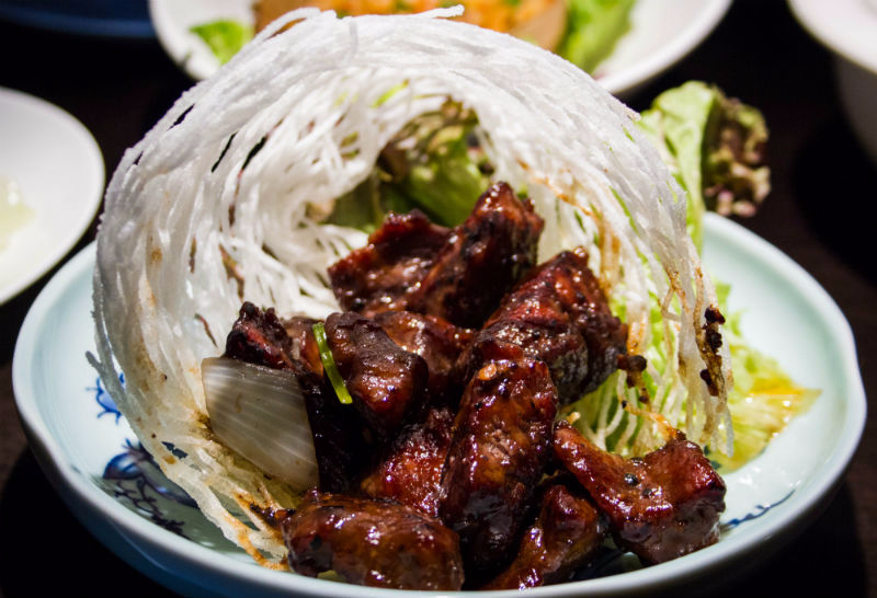 The main course arrives, an impressive selection of dishes to please lovers of meat, fish and rice. The XO Seafood and Water Chestnut Lettuce Wrap, filled with finely diced squid, prawns, scallops and abalone, is delicately cooked, tossed with crunchy green beans and packing a generous level of heat. The Stir-fry Black Pepper Rib Eye Beef with Merlot is even better, with tender meat and a sticky coating that is well-seasoned and perfectly accompanied by Ginger and Spring Onion Fried Rice. The least impressive item on the table is the Seasonal Vegetable, a baby bok-choy which adds an unwelcome bitterness. Still, this is easily forgiven in the grand scheme of this glorious feast of flavours and textures.