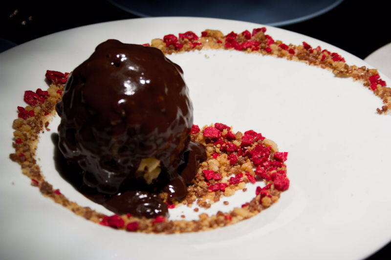 Finally, completing the Dim Sum tradition, is Hakkasan’s Classical Beauty tea, with hints of jasmine and a lovely, settling quality. This is enjoyed together with the Apple Tatin, made with Calvados and served with vanilla ice cream. The tart apple is accompanied by crumble for added crunch and a delicious smear of apple compote for sweetness. The Jivara Bomb is shamelessly indulgent, teasing one’s inner child with a white chocolate and rice crispies hiding a hazelnut ice cream. Completed with melted chocolate, dried raspberries and crumble, this is the definition of decadence