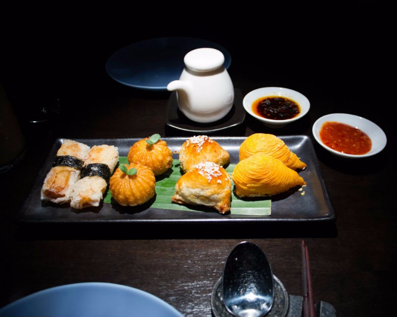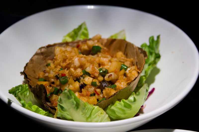 The Crispy Duck Salad is the perfect introduction: made with succulent shredded duck topped with a layer of crispy skin and accompanied by refreshing pink and yellow pomelo and creamy pine nuts, the result is outstanding. Enjoyed alongside the Coco Passion and the Gavati Refresher, our two light, sweet and fruity mocktails of choice, we are off to a positive start.
