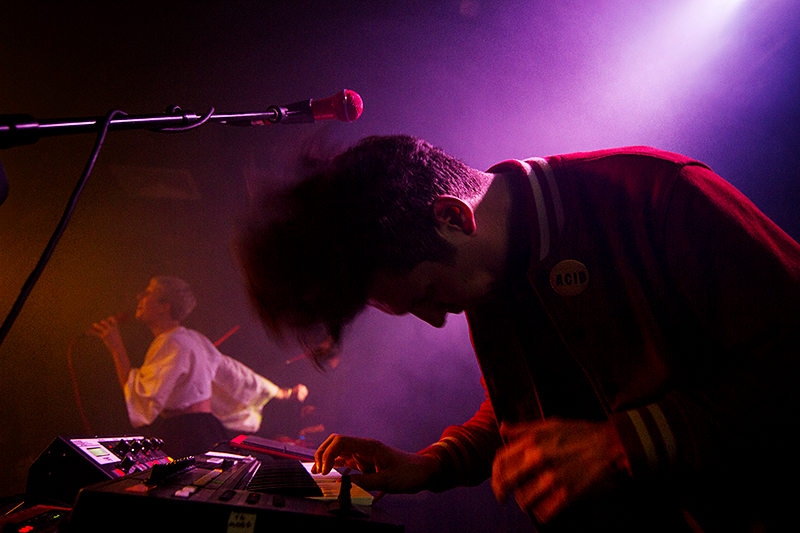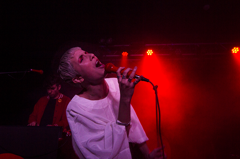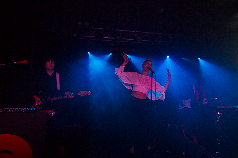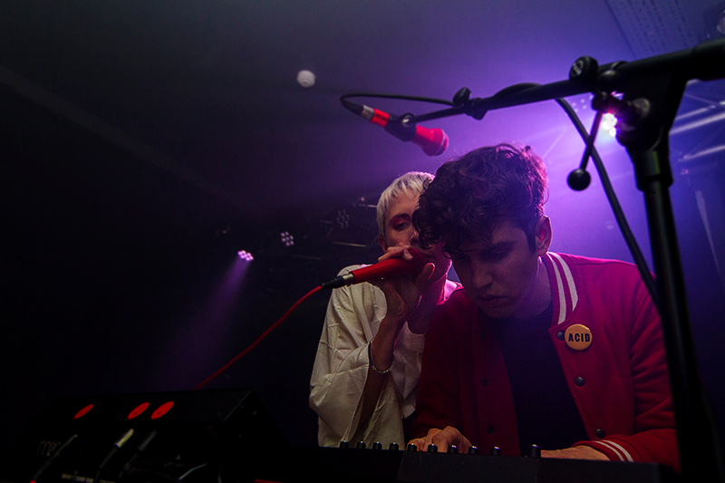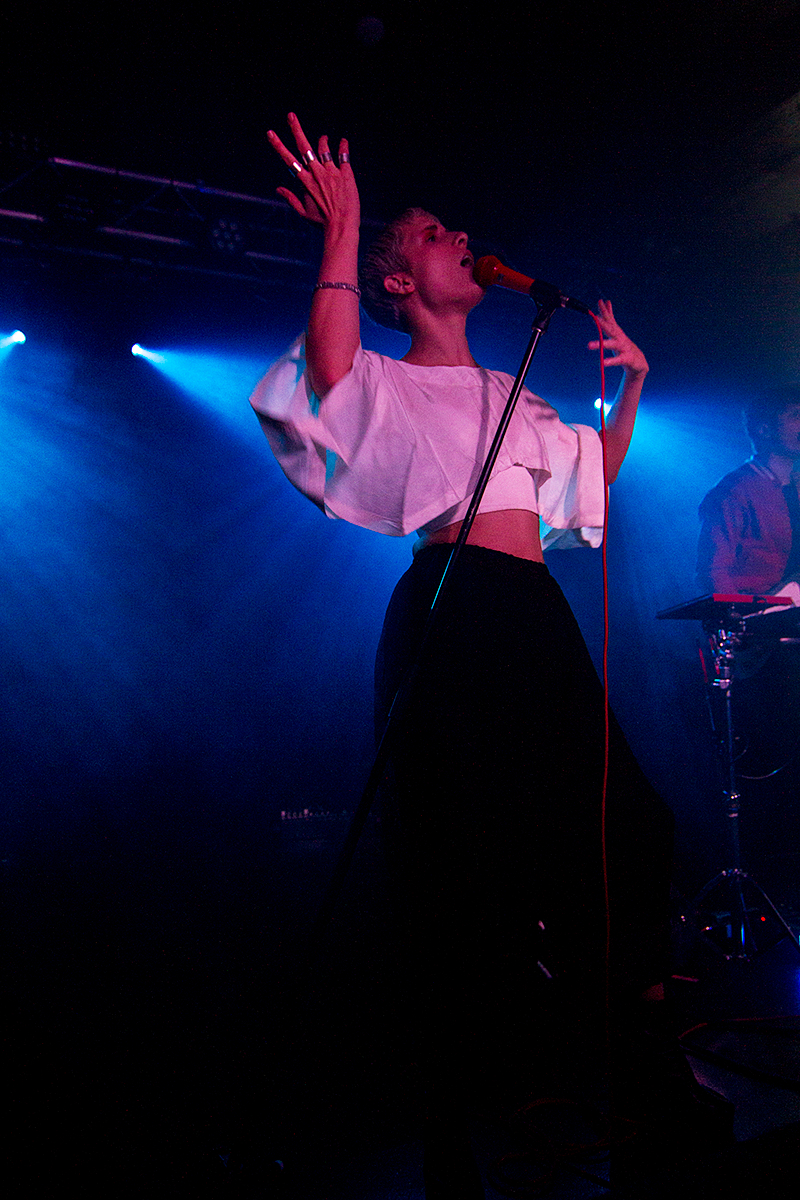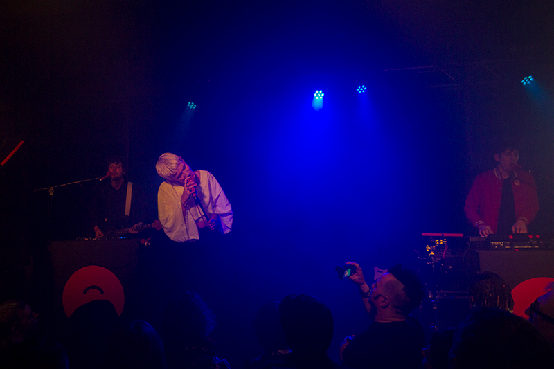 The sound takes the stage before the band does as the three eclectic members run out abruptly from behind the curtains, extravagantly cheered along the crowd. Neon lights, lasers and plenty of dry ice fill the room to accompany the futuristic sounds of the evening. The perfect blend between Claire’s peculiar powerful voice and Jona’s synth pop vibes shakes the speakers and walls.