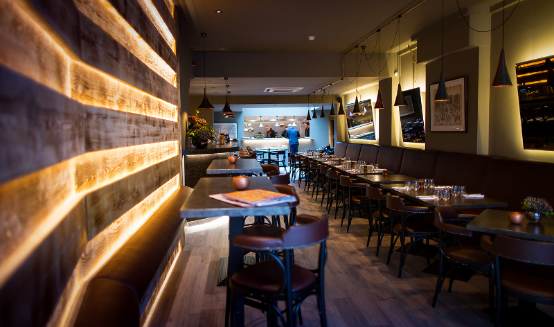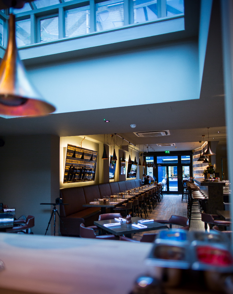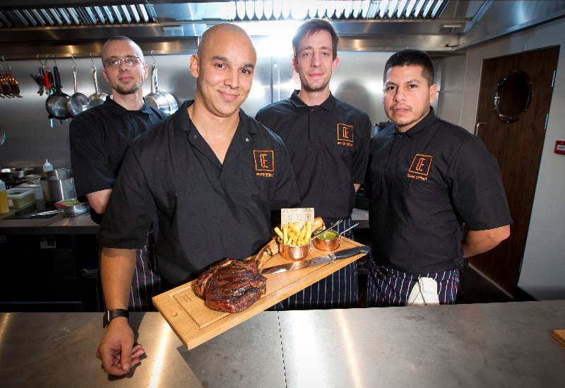 The warmly lit and sparsely decorated interior of Chelsea’s new steak house was filled with people with greedy eyes last night as waiting staff walked calmly around carrying enormous wooden chopping boards of neatly arranged steak and tiny copper pans of various accompaniments. It looked so good that people even began sizing each other up as canapé-consuming competition.