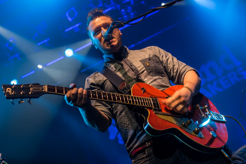 Much like the band, there was not one still person in the room – and McClure made sure of this. “I wanna see everybody bounce!” he screamed as the intro to Bassline came on; with a full-scale mosh pit, drinks flying in all directions, people on each other’s shoulders and more attempting to crowd surf, the band wasn’t the one only putting on a show. Mr Glassalfempty was an audience favourite as the funky bass riff had everybody’s feet moving and hands in the air. However, things turned emotional when the stage lit up bleu, blanc, rouge, and McClure acoustically performed Paris at Night, dedicating it to the recent Paris attacks.