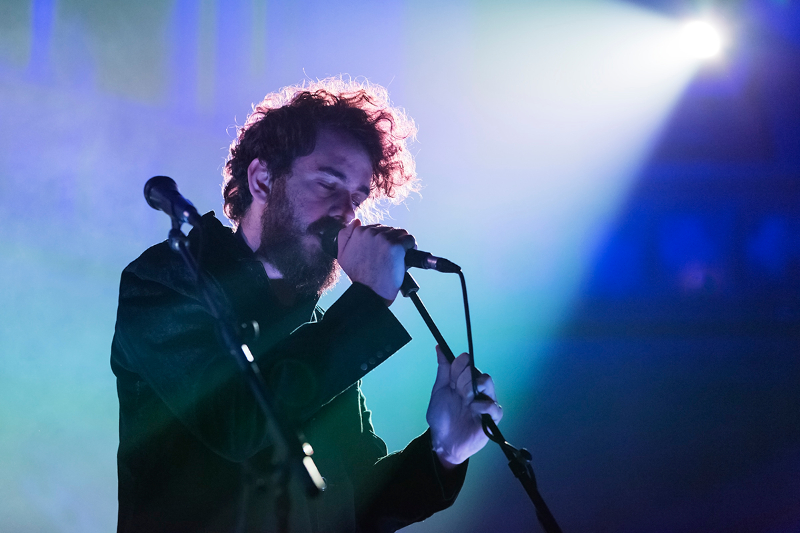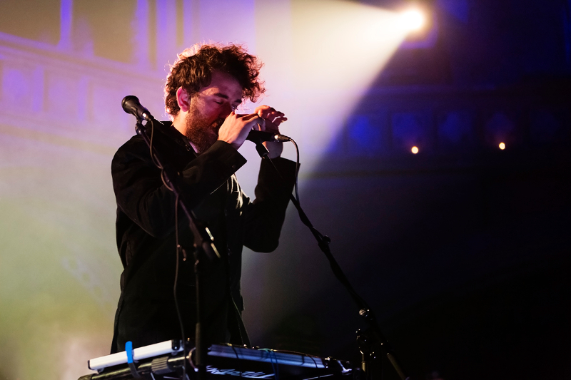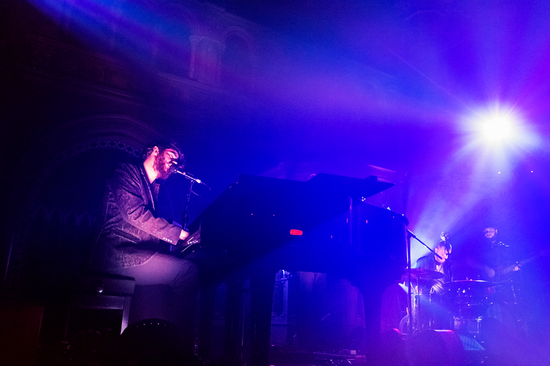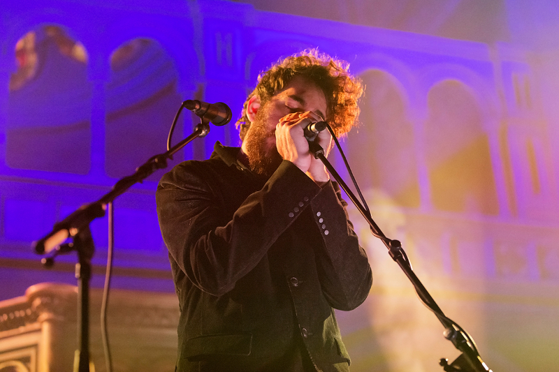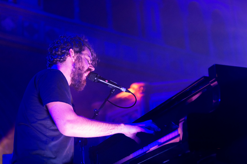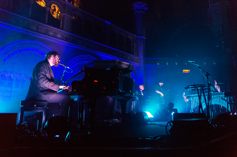 The venue is completely seated, which feels unusual at first for a gig but it soon becomes evident how well the set-up works. The audience sways slightly, but ultimately is so absorbed in the act that movement is not necessary. The lights only add to the emotions, blue and white beams flicker, illuminating in turn all the nooks and crannies of this magnificent 19th century building.