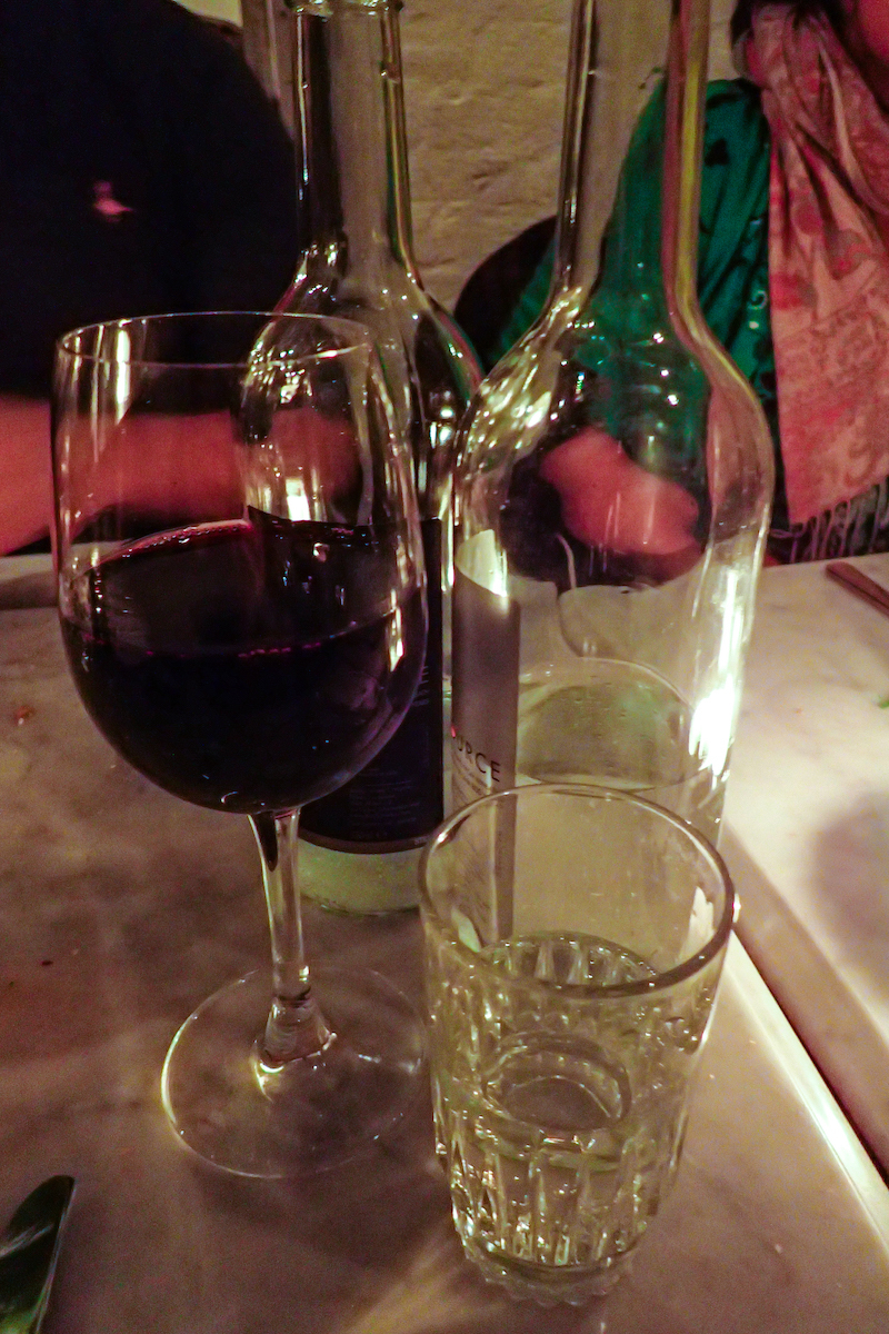 Inside, the bar area is a deeply trendy affair: a wide, broodily-lit, low-ceilinged space with a long, porcelain-topped bar that is reminiscent