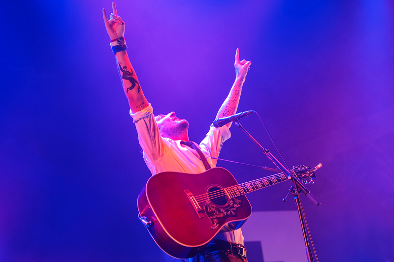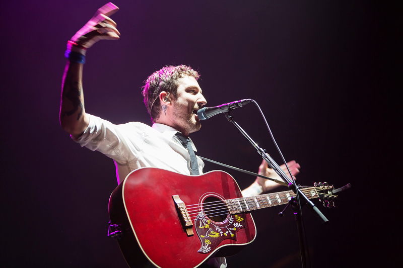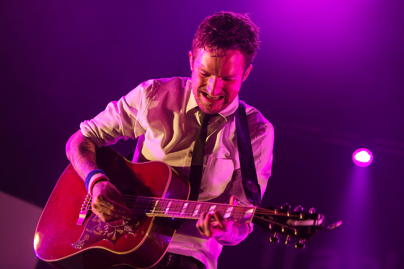After a career as vocalist for the post-hardcore band Million Dead, Frank Turner now celebrates his tenth year as an accomplished acoustic-based solo artist. On the last date of his sixth studio album tour, Positive Songs for Negative People, the songwriter and his four-piece backing band The Sleeping Souls, amuse an approximate 1,800 fans at Alexandra Palace.