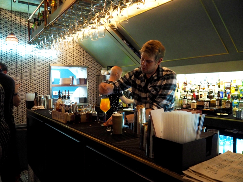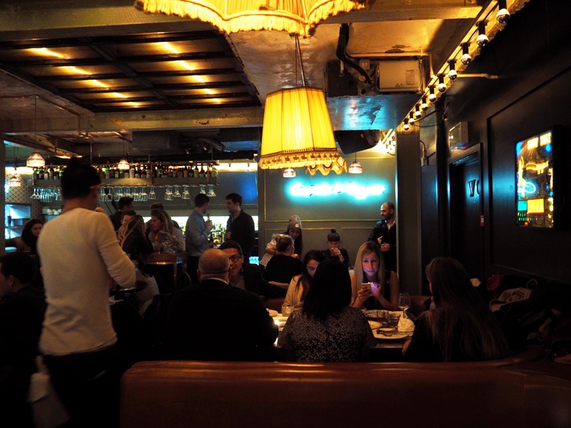 The cornbread muffins have all the heat of the jalapeno pepper but unfortunately not a great deal of the flavour. The collard greens that looked so fresh and vibrant in their little bowl are destroyed by a French amount of garlic, and have so much salt in them that I am forced to grasp for my cocktail (a sugary bourbon milkshake with a sneeze-inducing pinch of cinnamon dropped on top). The macaroni is nice, but would have been improved by the presence of some discernible kind of cheese and, as for the chicken, it is a bit of a disappointment. The crispy seasoning on the outside glistens beautifully in the dimly lit restaurant – perhaps this could be the torchbearer for the entire spread? Sadly not. Beneath beautifully crunchy layers of oleaginous herbs and spices lie sad, slippery pieces of chicken flesh that, while cooked, are far too slimy to be considered “finger lickin’ good.”