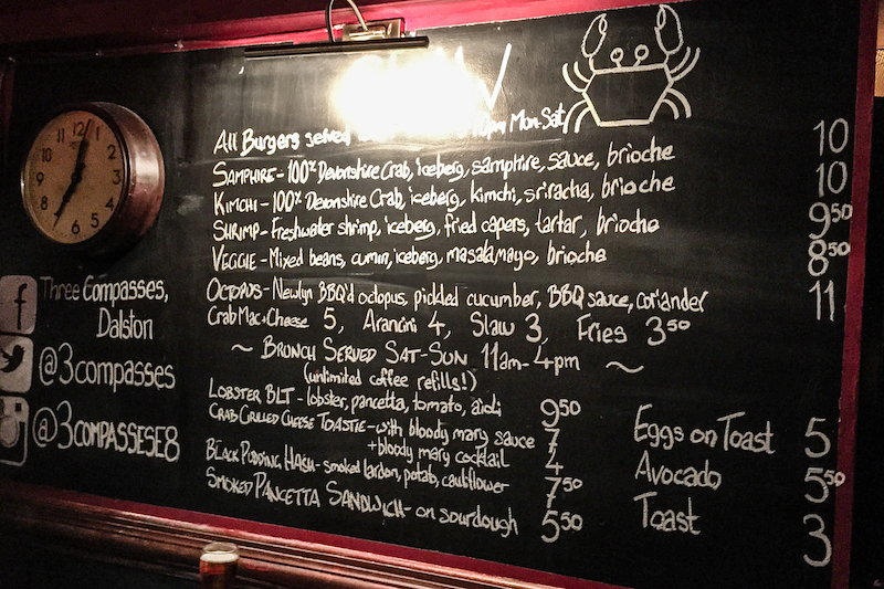 Walking from either Dalston Kingsland or Dalston Junction you end up at The Three Compasses around the same time. Claw’s popup takes place at the shiny red pub, which looks like a beacon welcoming you inside, with huge claws on either side of the entrance, until the end of January 2016.