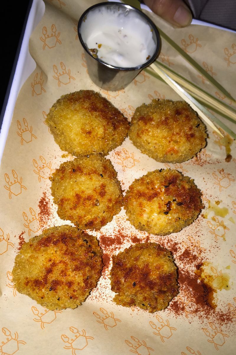 This launch is about crab, and crab only, and we were served the Arancini Rissotto Balls, Mozzarella, Lemon Aioli as well as the Samphire Crab Burger, which included Devonshire handpicked crab, pepper salsa, samphire and Claw Sauce, all in an organic brioche. Diners were fighting for these, though they were slow coming.