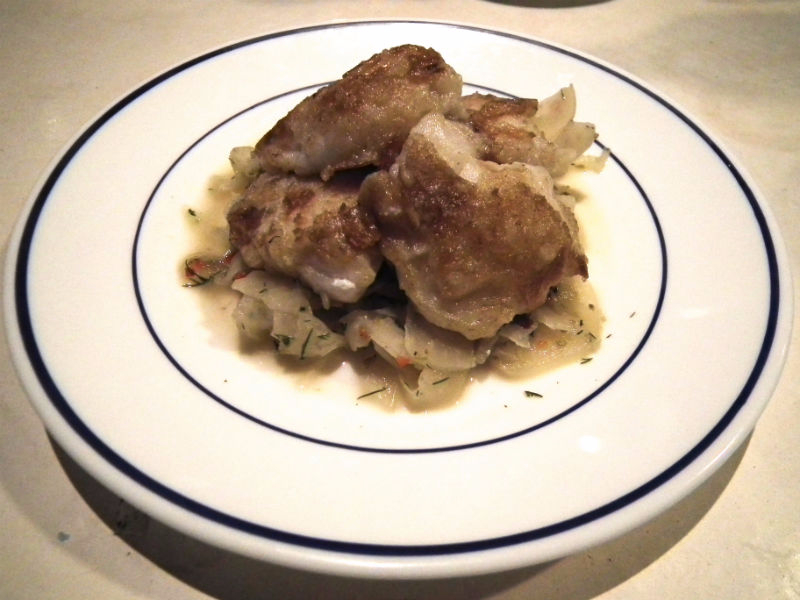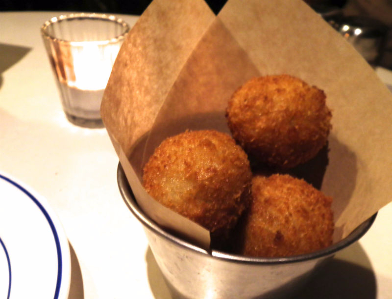 There could be no more comforting food to counter the rain splattering the windows than what follows. We begin with the Cheddar and Black Cab Stout Croquettes: perfect little spheres nestled in brown paper. The crispy shells fall to pieces in the mouth, making way for oozing smoky cheddar. Next come the Cod Cheeks. These have been slow-cooked with dill and fennel and come on a bed of greens, peppered with little pops of red chilli. The flavour recalls seaside fish and chips with a delicate twist of spice.