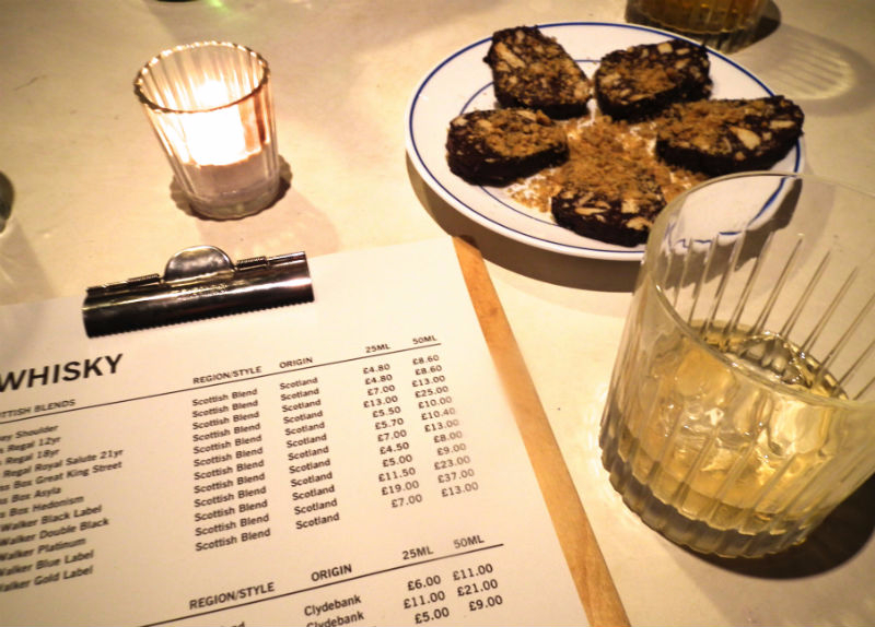 Even the desserts fit the whisky theme. We investigate with a plate of Dark Chocolate Bourbon and Honeycomb Biscuits. Smooth to the tasty and gooey to the touch, they leave my fingers sticky with chocolate.