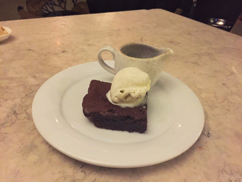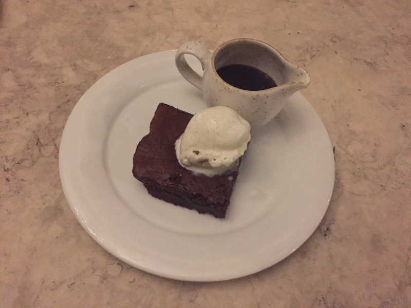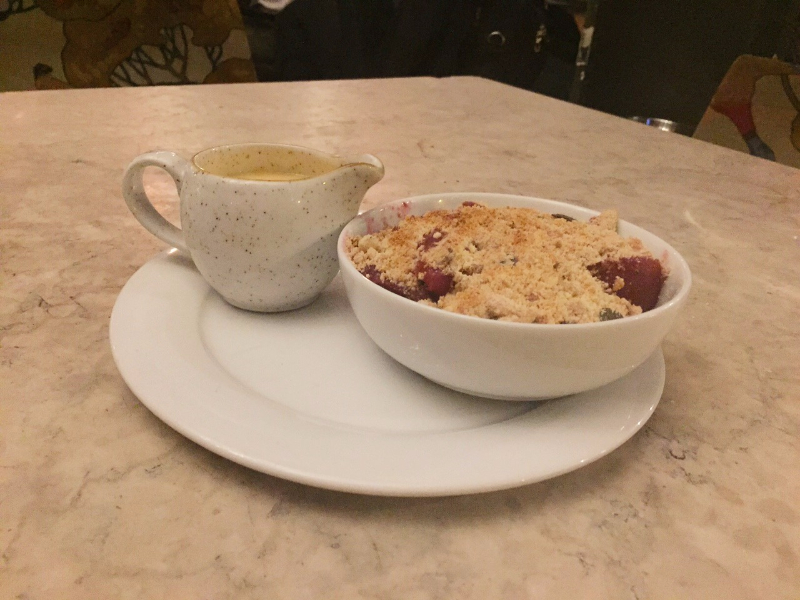 The sweet ending to our culinary adventure was two delightful puddings. There was a rich, gluten-free chocolate brownie, which was marvelously moist, not-too-sweet and graciously topped with a dollop of smooth vanilla ice cream to subtly tone down the decadent depth of the cocoa. We also devoured an ample bowl of terrifically tart winter fruit crumble, which arrived at the table steaming hot and accompanied by a quaint jug of warm, freshly made custard to compliment the tang of the deep purple berries nestled under generous, buttery layers of topping.