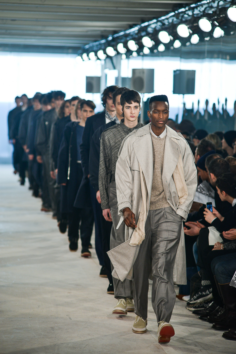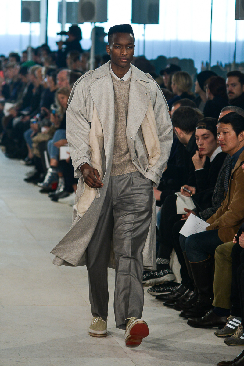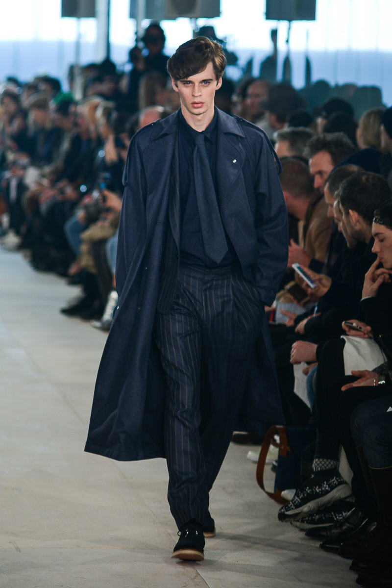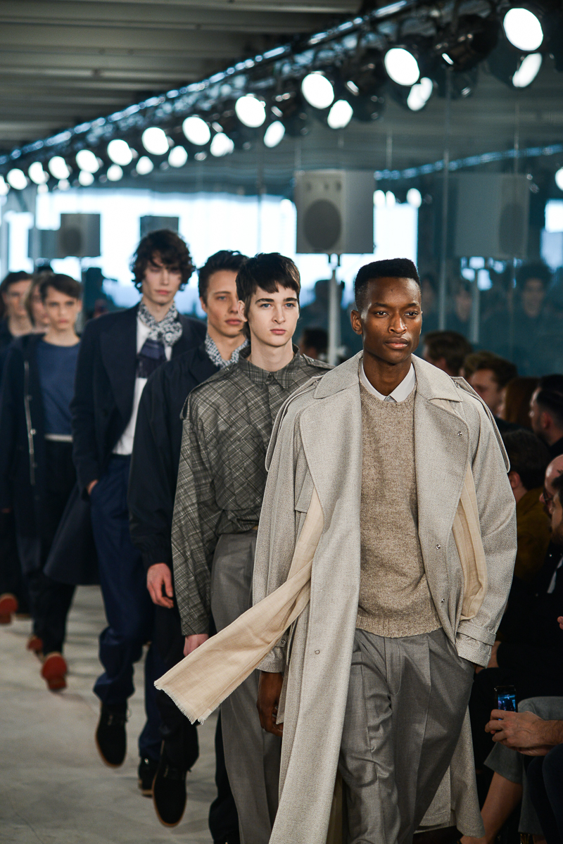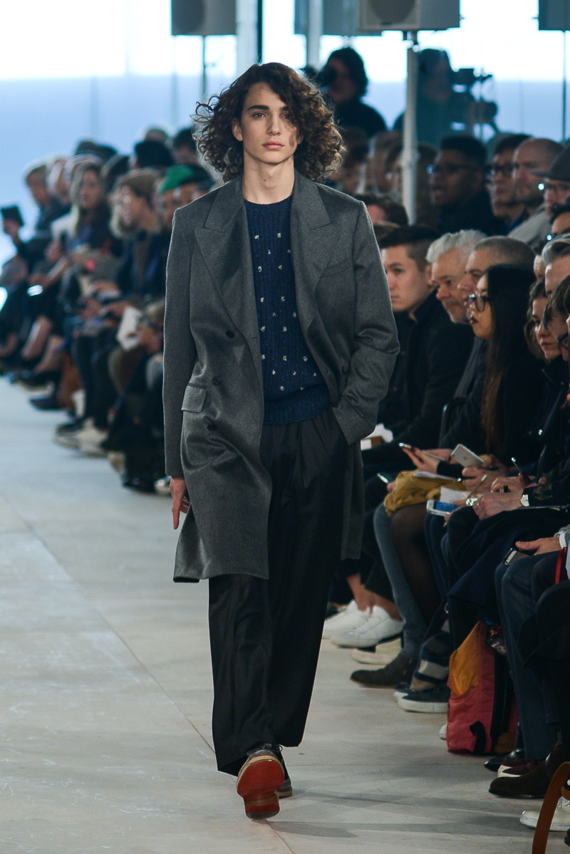Slouchy, oversized wool and cashmere coats enveloped the body, usually in the form of trench or boxy double breasted designs. Beneath these, hand-knitted sweaters had a familiar, vintage vibe, which was grounded in luxury by the high-quality wool and mohair fabrics.