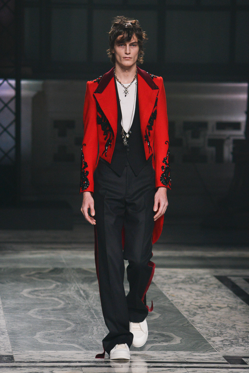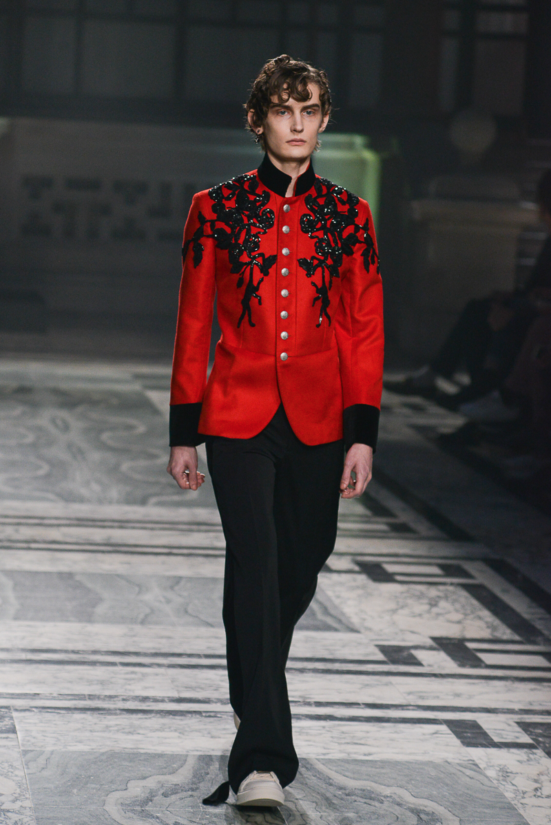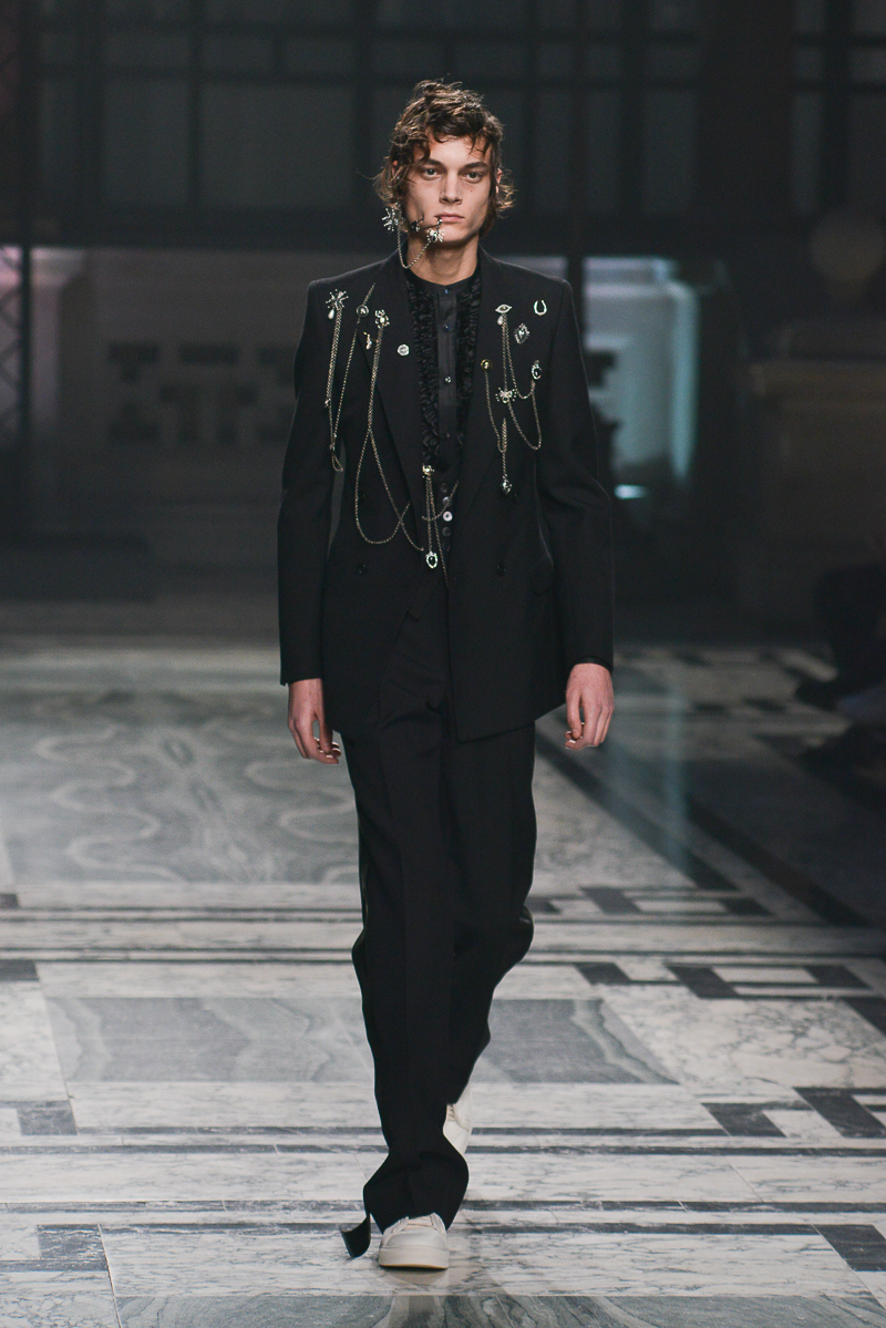 Alexander McQueen presented a gothic elegant autumn/winter 2016 collection at the Foreign and Commonwealth Office for London Collections Men. Here are our images from the show.