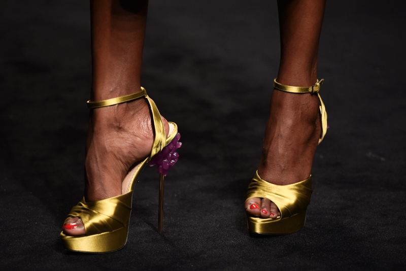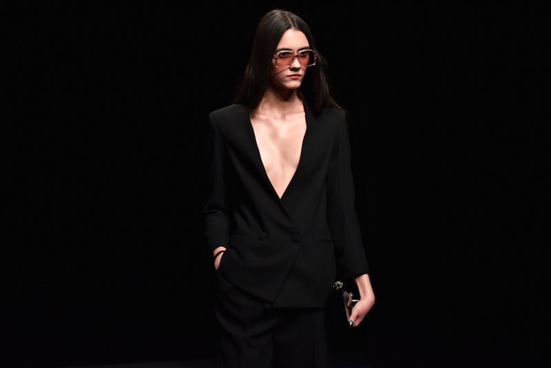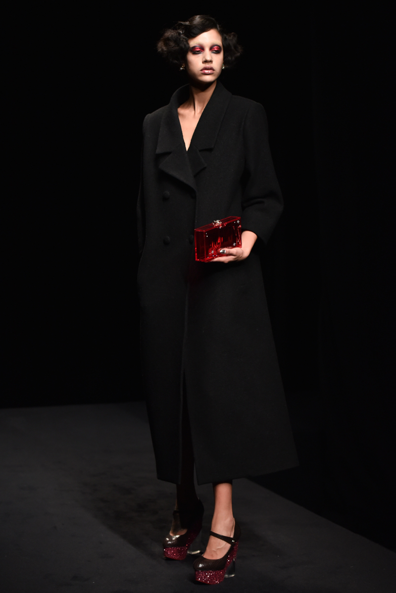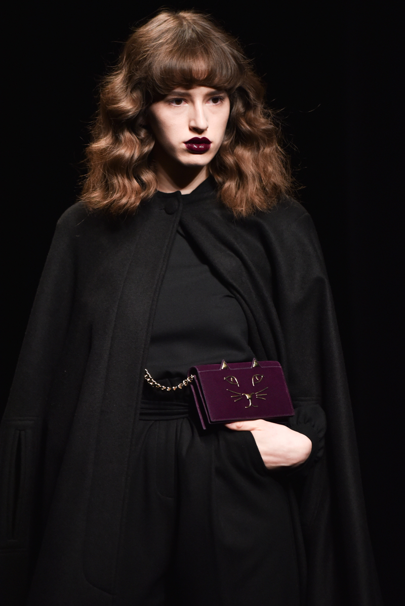 Charlotte Olympia presented a minimalist autumn/winter 2016 collection at the Roundhouse for London Fashion Week. The new looks were dark with stylish tailoring. Here are our images from the show.