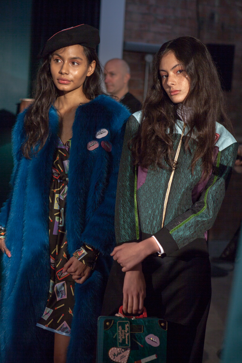 Despite revealing a darker side to Peppiatt, Motel Clio maintained the tongue-in-cheek humour that she is becoming known for. The models sported bunny-faced slippers and hard-cased handbags stickered with glittered-lips reminiscent of every 90s girl’s childhood. A matchstick pop art style print was showcased on a girly, ruffle skirt and bell-bottom culottes, adding to the vibrancy and youthfulness of the brand.
