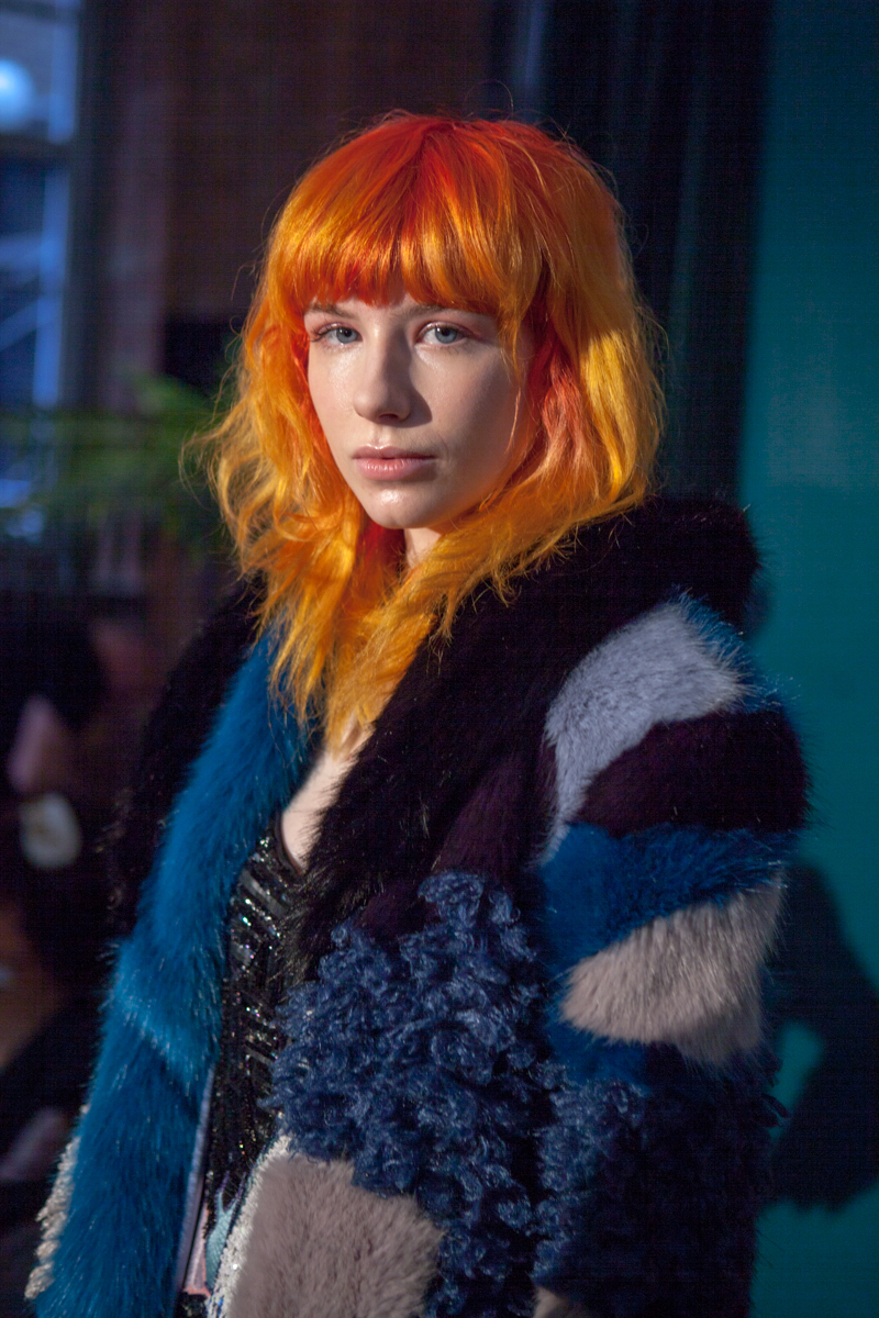 The A/W 2016 presentation Motel Clio exemplified Peppiatt’s zest for challenging concepts of womanhood and maintained her love for textile experimentation at its core. The fabrics spanned from netting and mesh to thick furs and leather. This variety highlights the designer’s desire to explore different ideas of sexuality and further demonstrates her focus on individuality. Some pieces also featured detailed embroidery which was more refined and heavy than the embellishment seen on Peppiatt’s earlier collections. This pointed towards sophistication and glamour, an image which was complimented by the use of black and royal blue hues that gave the pieces a vampy undertone.
