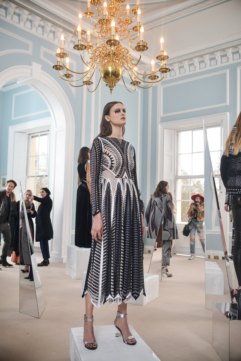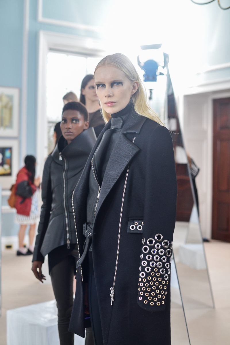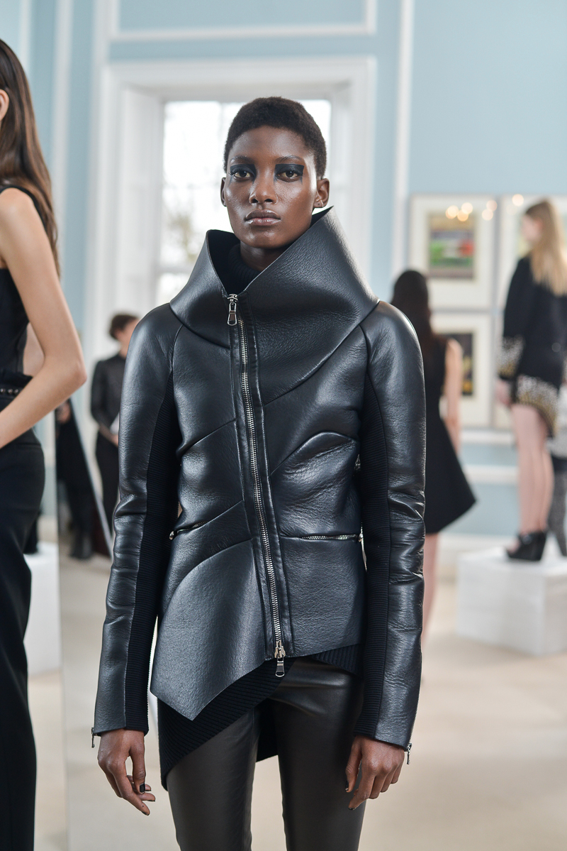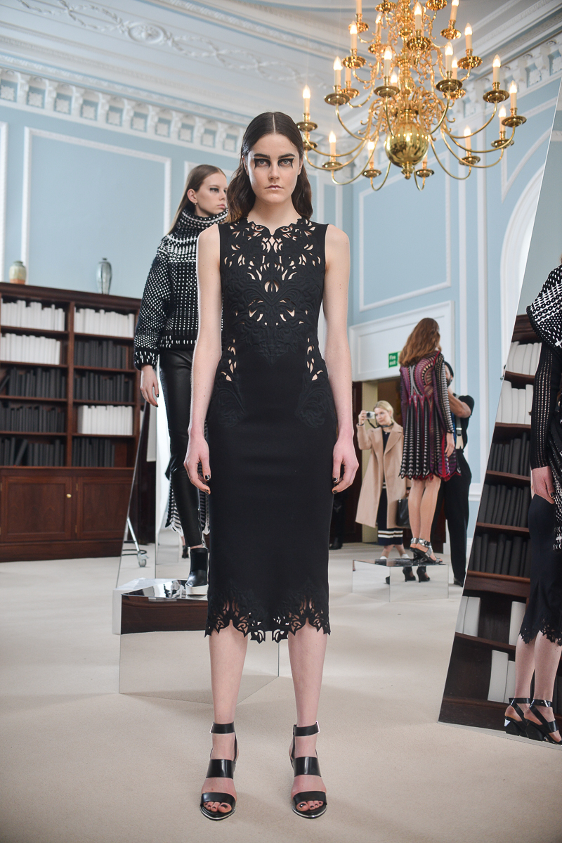 Manuel Facchini presented his autumn/winter 2016 collection at Carlton House for London Fashion Week. The new looks were cocktail dresses featuring elegant cuts and a hints of skin, as well as black leather jackets. Here are our images from the presentation.