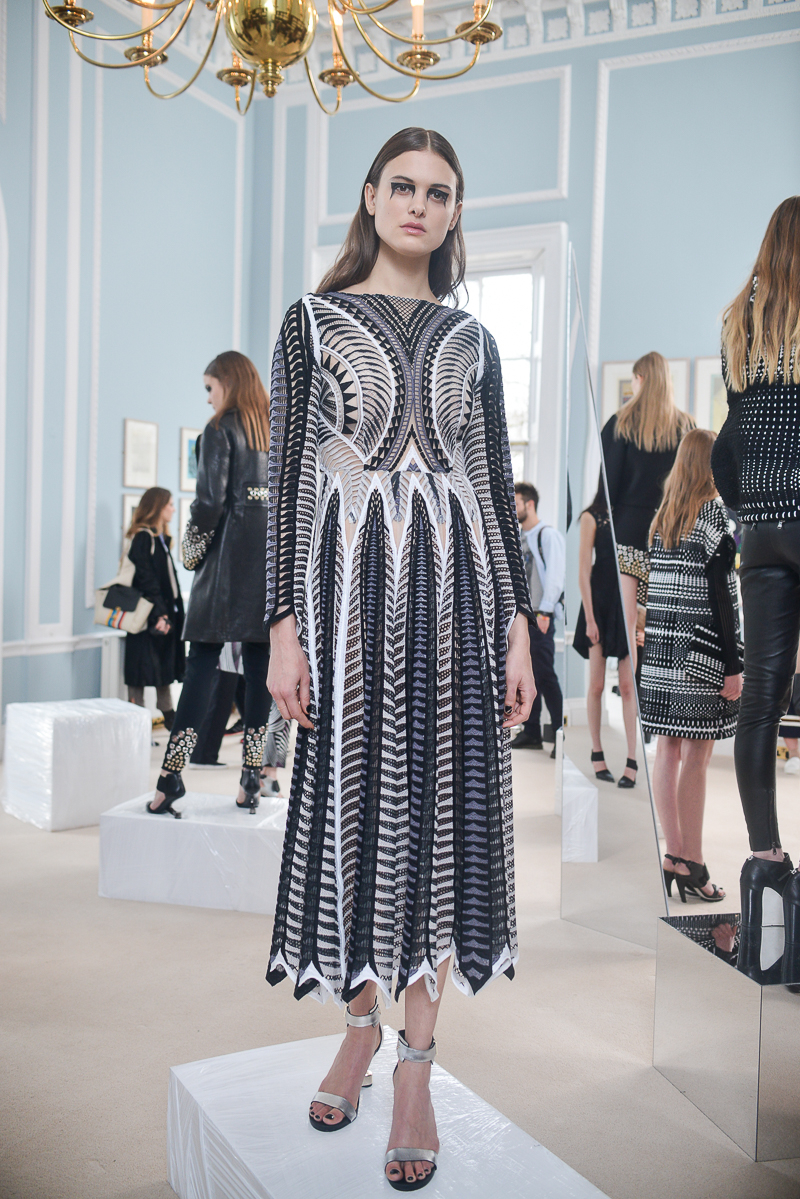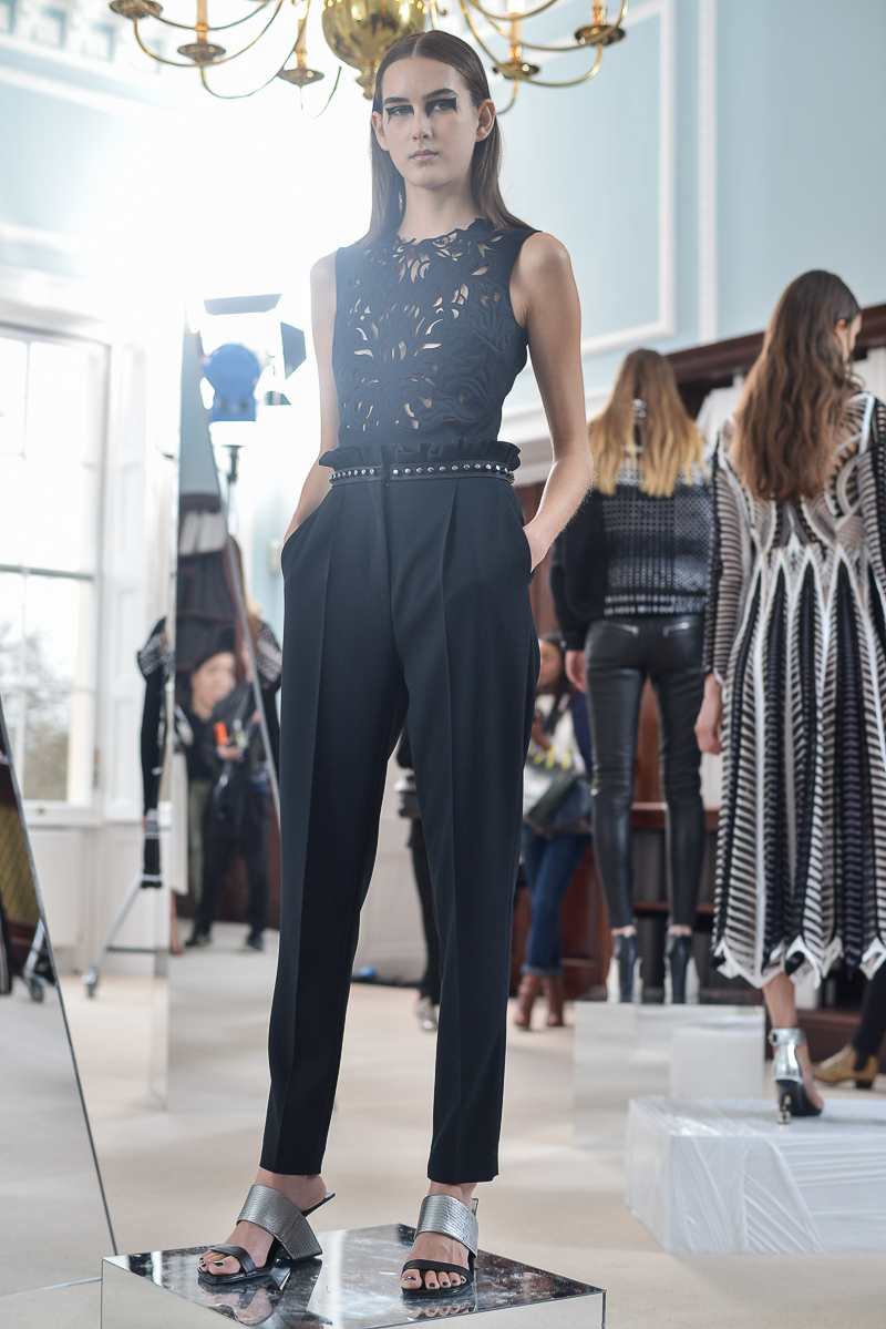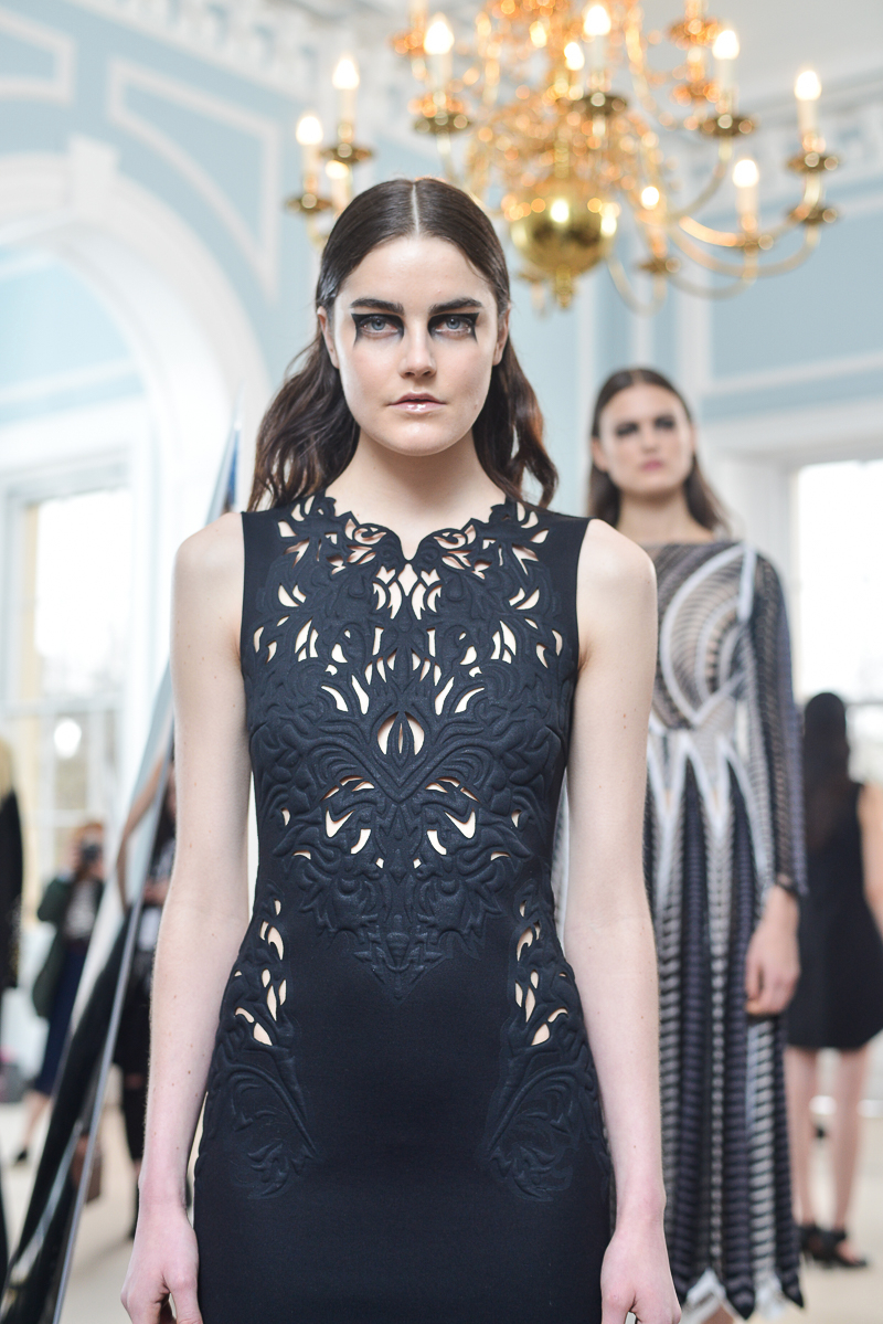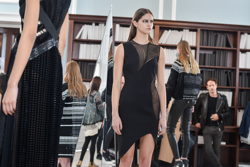 Manuel Facchini presented his autumn/winter 2016 collection at Carlton House for London Fashion Week. The new looks were cocktail dresses featuring elegant cuts and a hints of skin, as well as black leather jackets. Here are our images from the presentation.