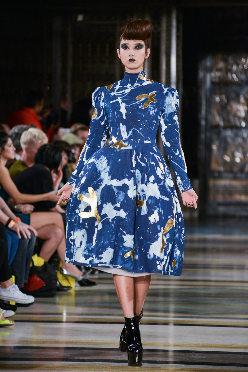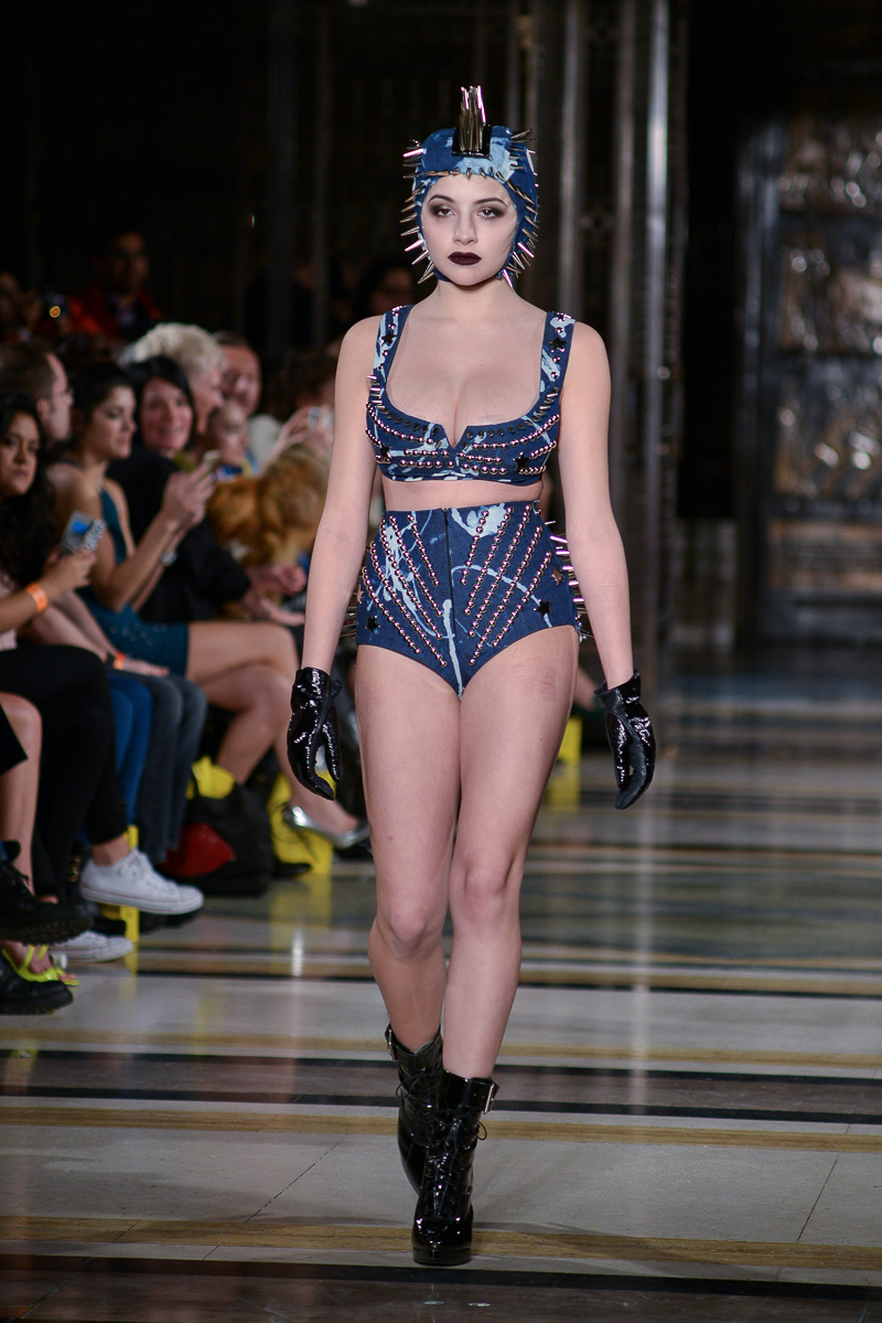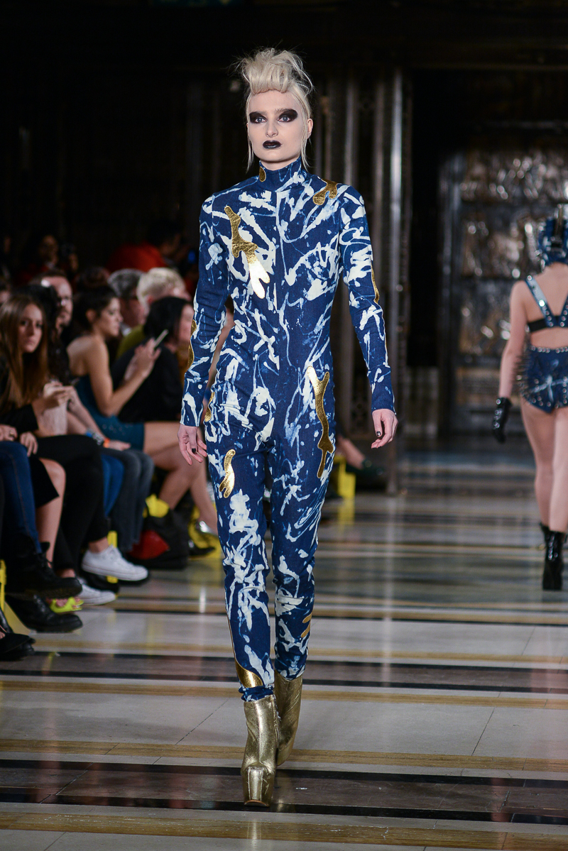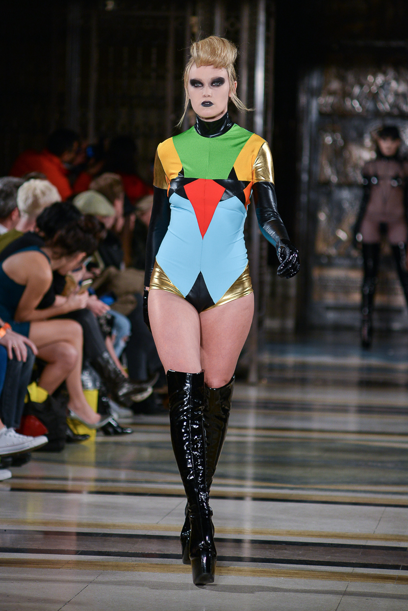 British-born designer Pam Hogg debuted her autumn/winter 16 collection in front of a packed crowd at Freemasons’ Hall last night. Celebrities including Nick Grimshaw, Jo Wood and Nick Rhodes sat on the coveted front row as Hogg presented her bold collection for the upcoming season.