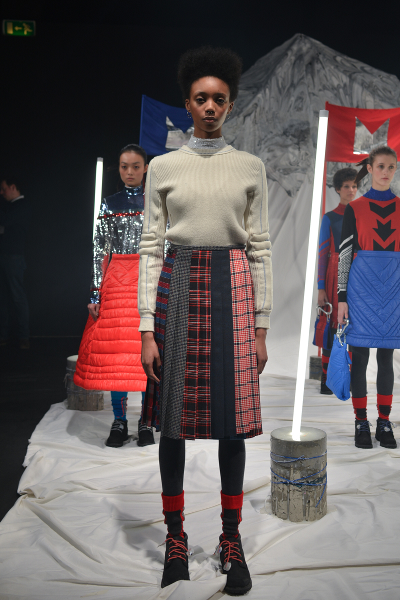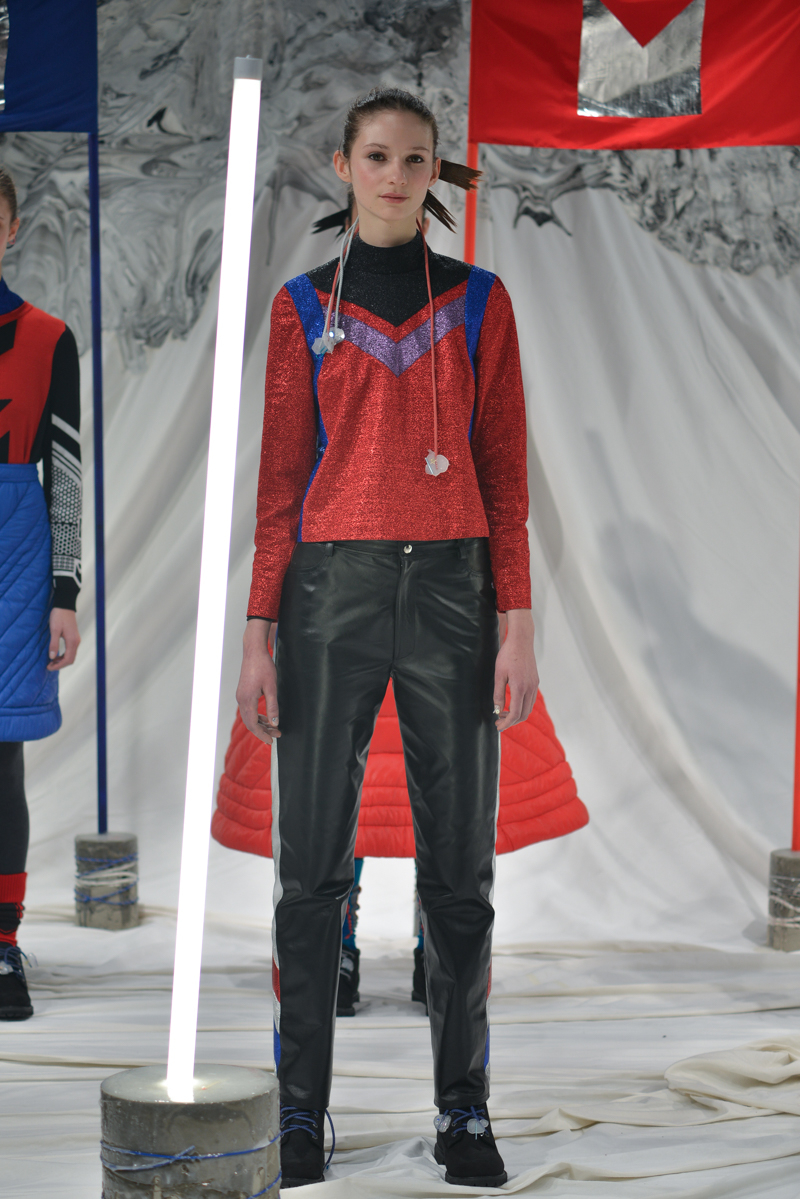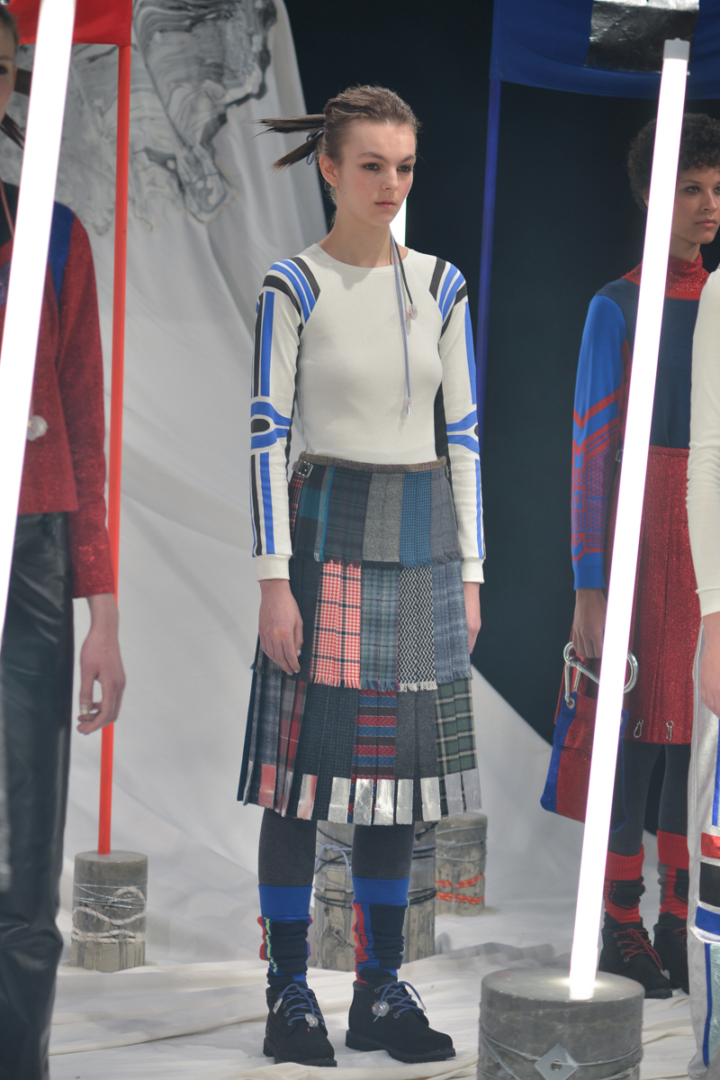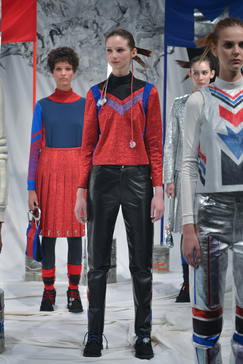 Sadie Williams presented a colourful autumn/winter 2016 collection at BFC Presentation Space for London Fashion Week. The new looks incorporated a bold theme of red, blue and white with a combination of patterns and textures. Here are our images from the show.