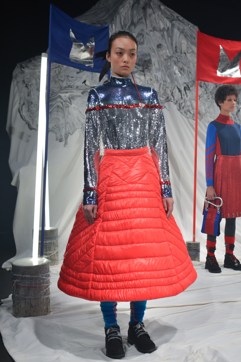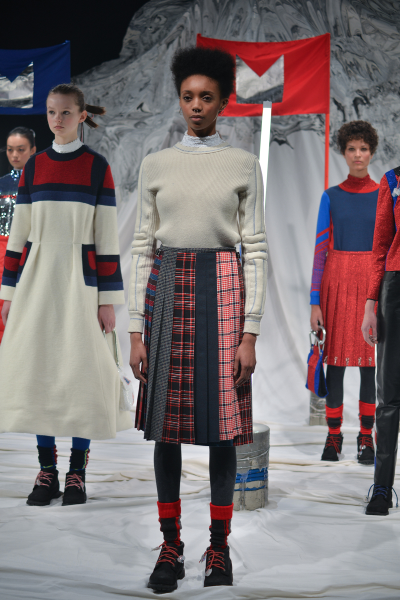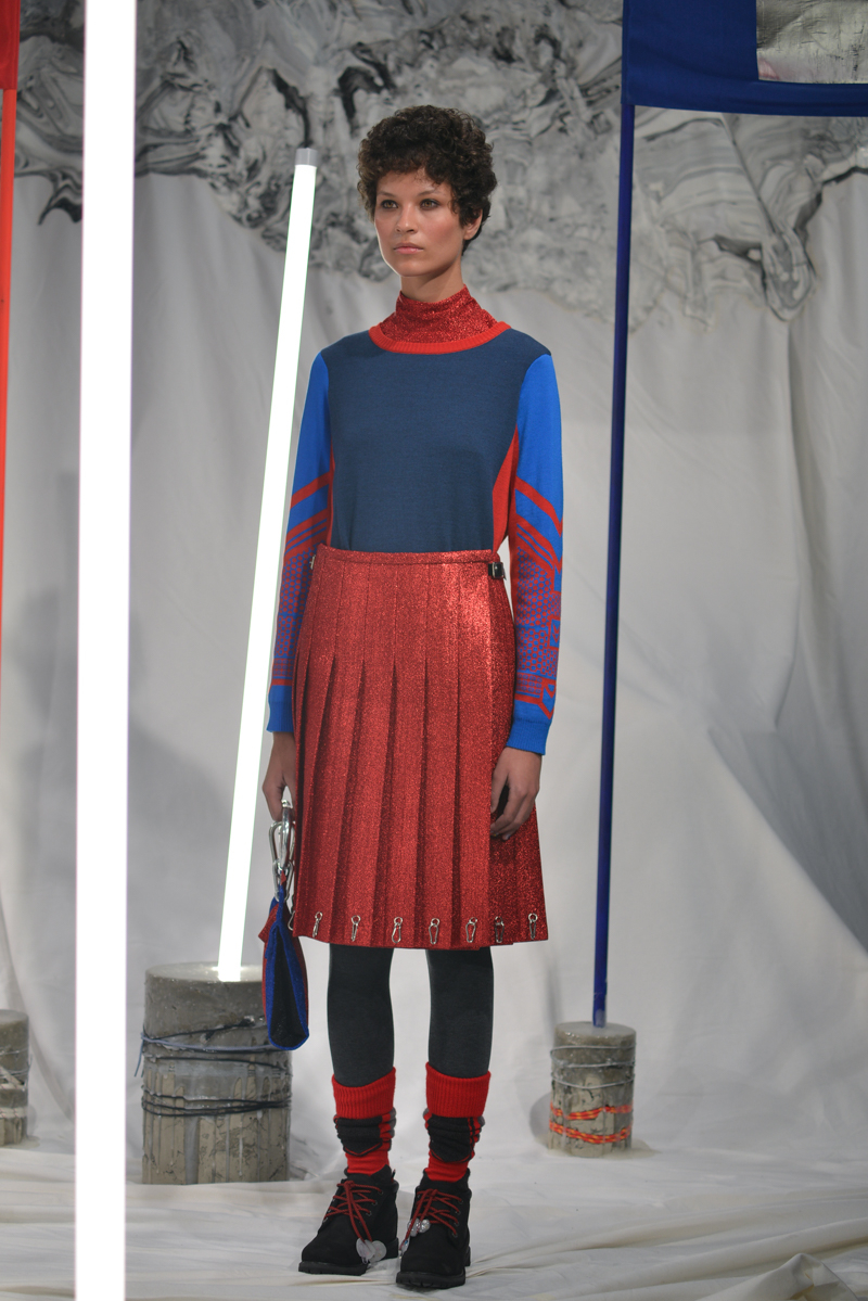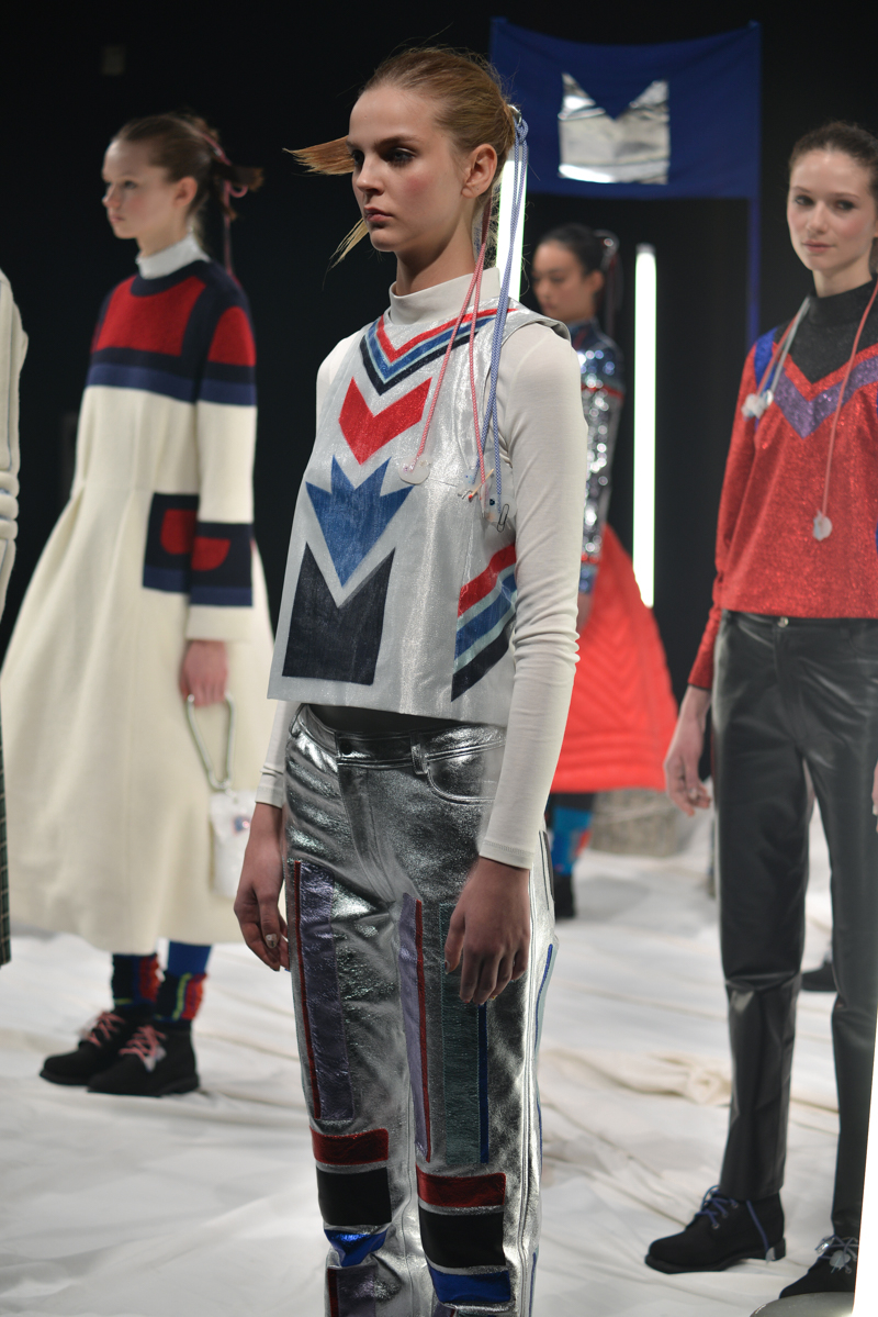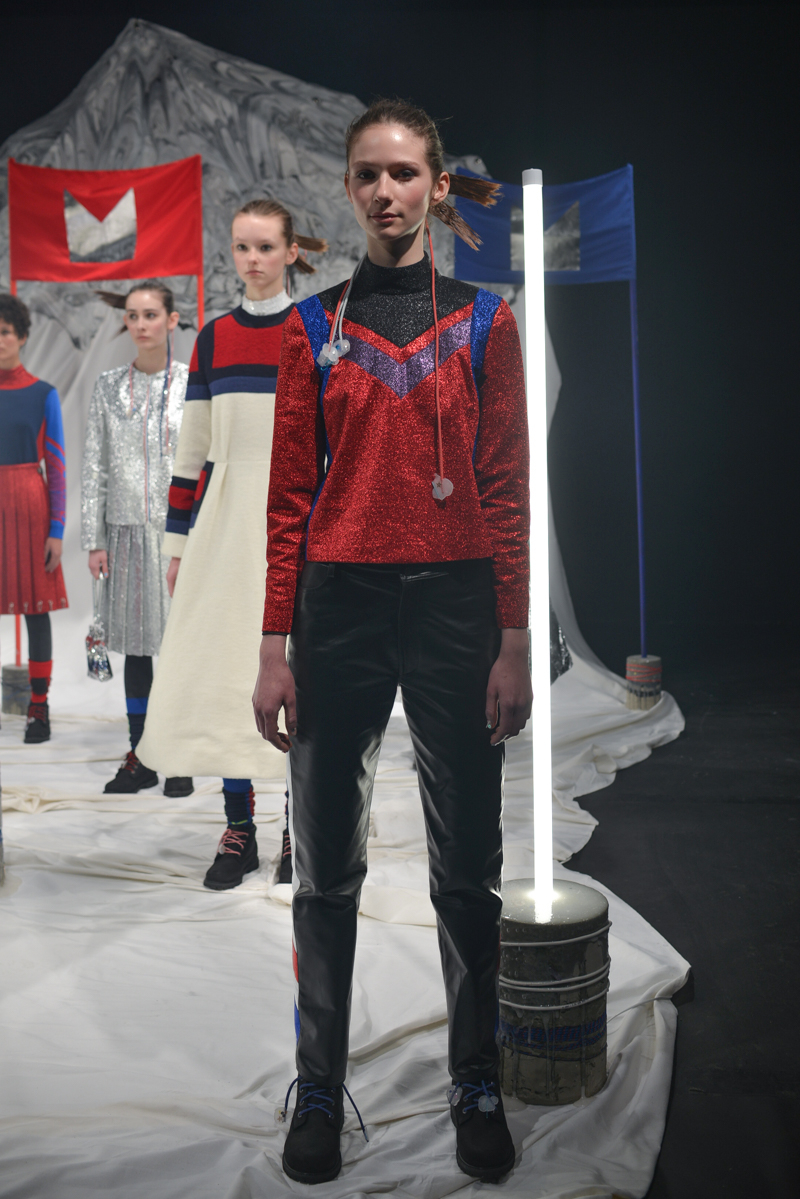 Sadie Williams presented a colourful autumn/winter 2016 collection at BFC Presentation Space for London Fashion Week. The new looks incorporated a bold theme of red, blue and white with a combination of patterns and textures. Here are our images from the show.