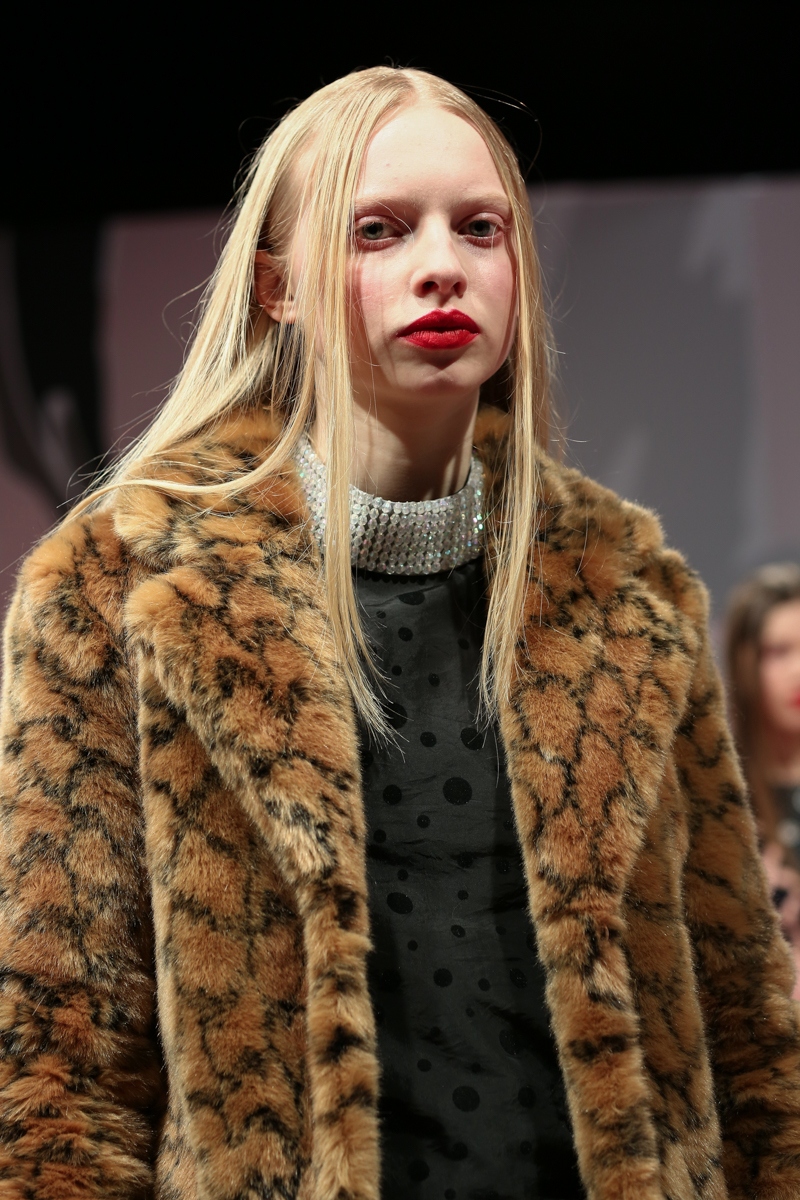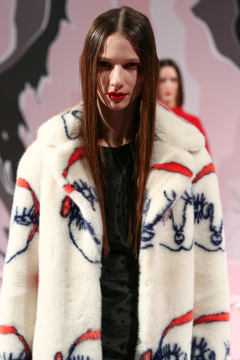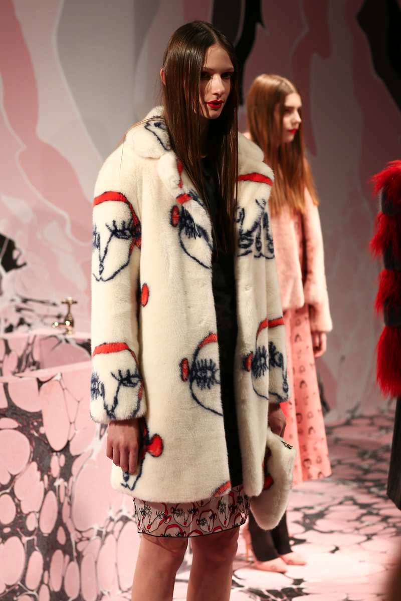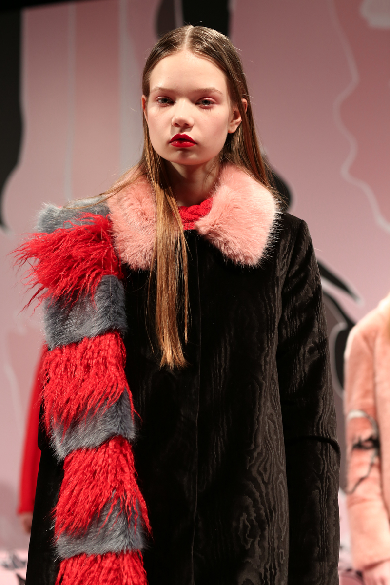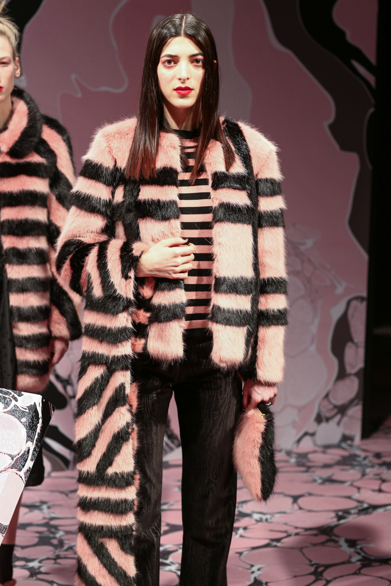 Shrimps presented a stylish autumn/winter 2016 collection at BFC Presentation Space for London Fashion Week. The new looks were full of interesting patterns accented by fur accessories. Here are our images from the show.
