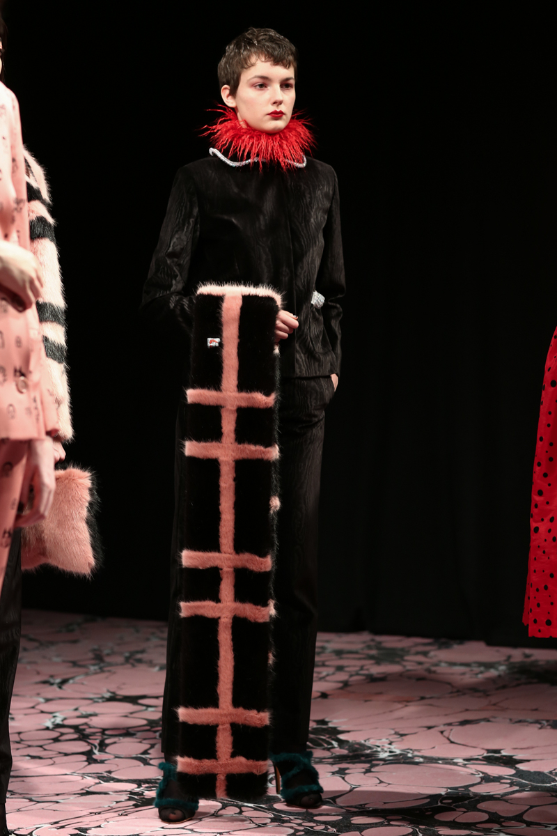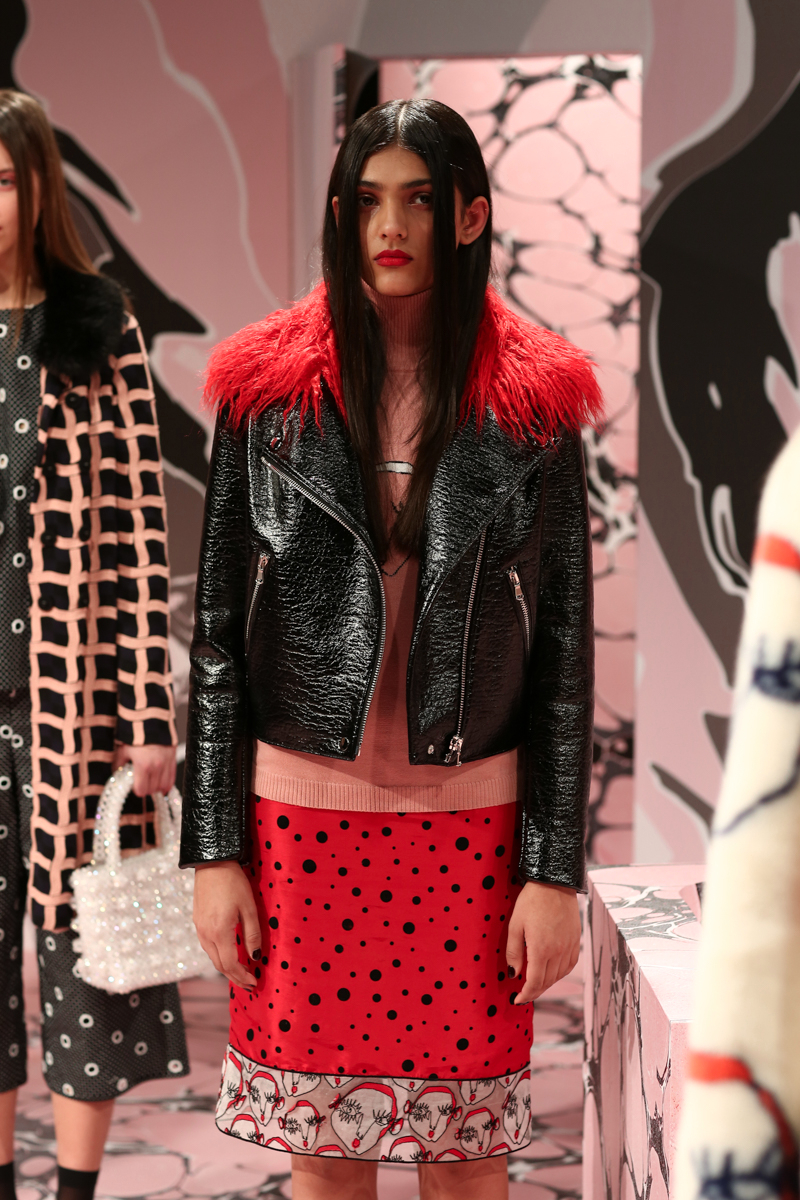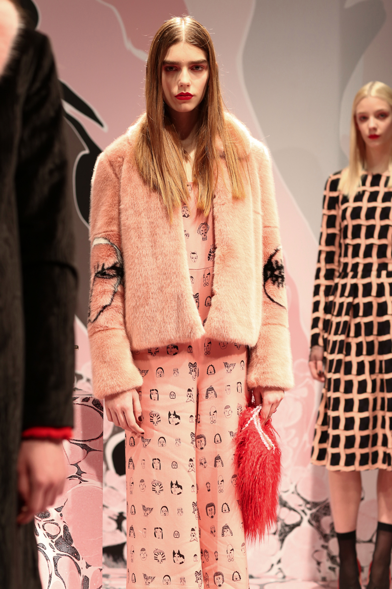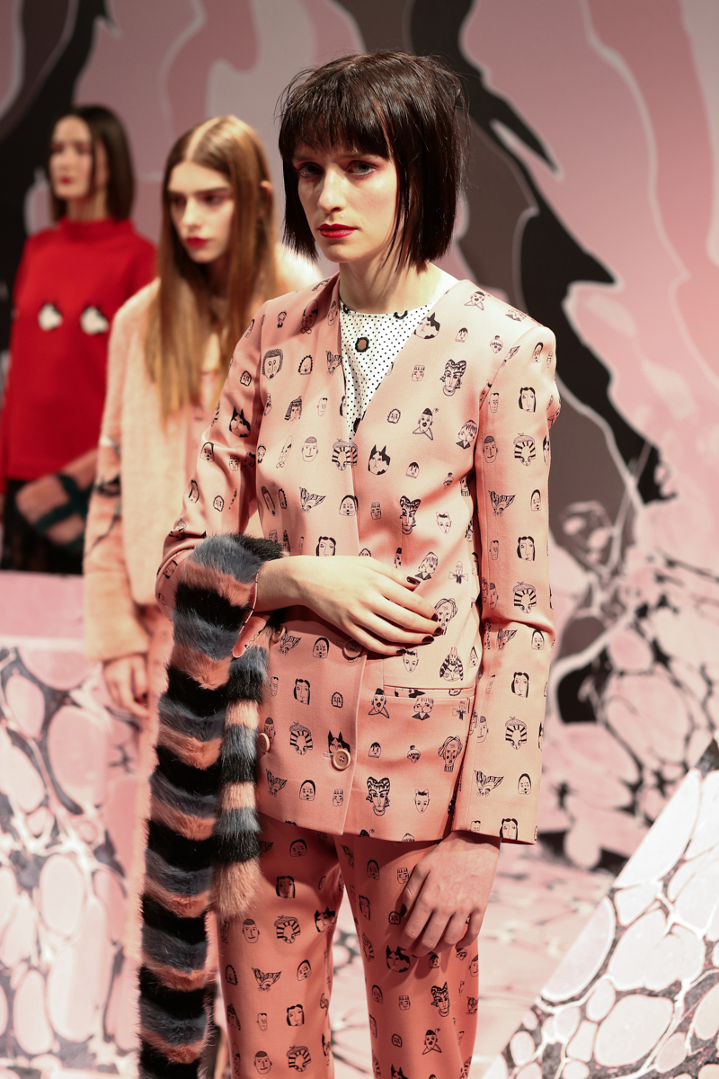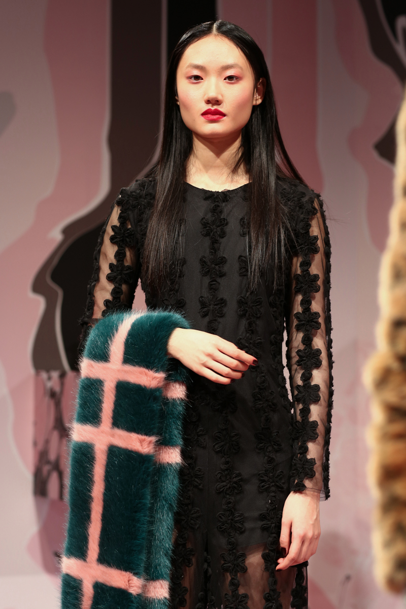 Shrimps presented a stylish autumn/winter 2016 collection at BFC Presentation Space for London Fashion Week. The new looks were full of interesting patterns accented by fur accessories. Here are our images from the show.
