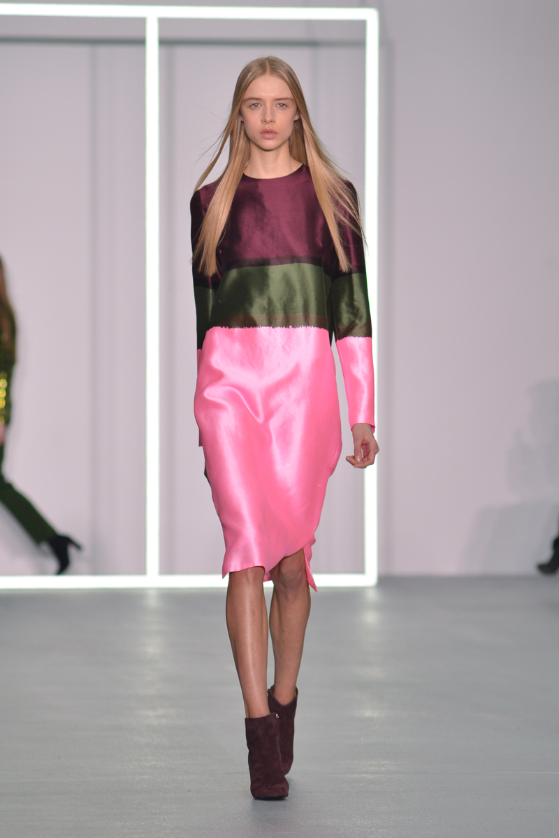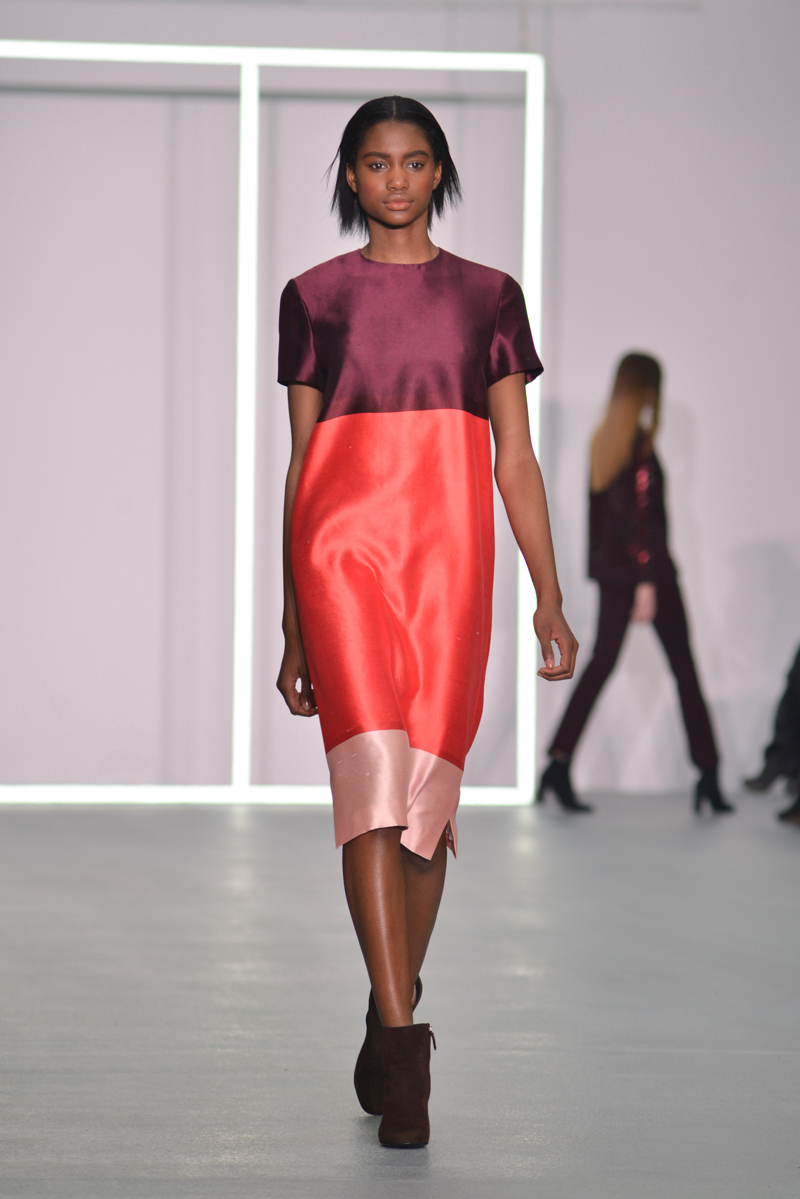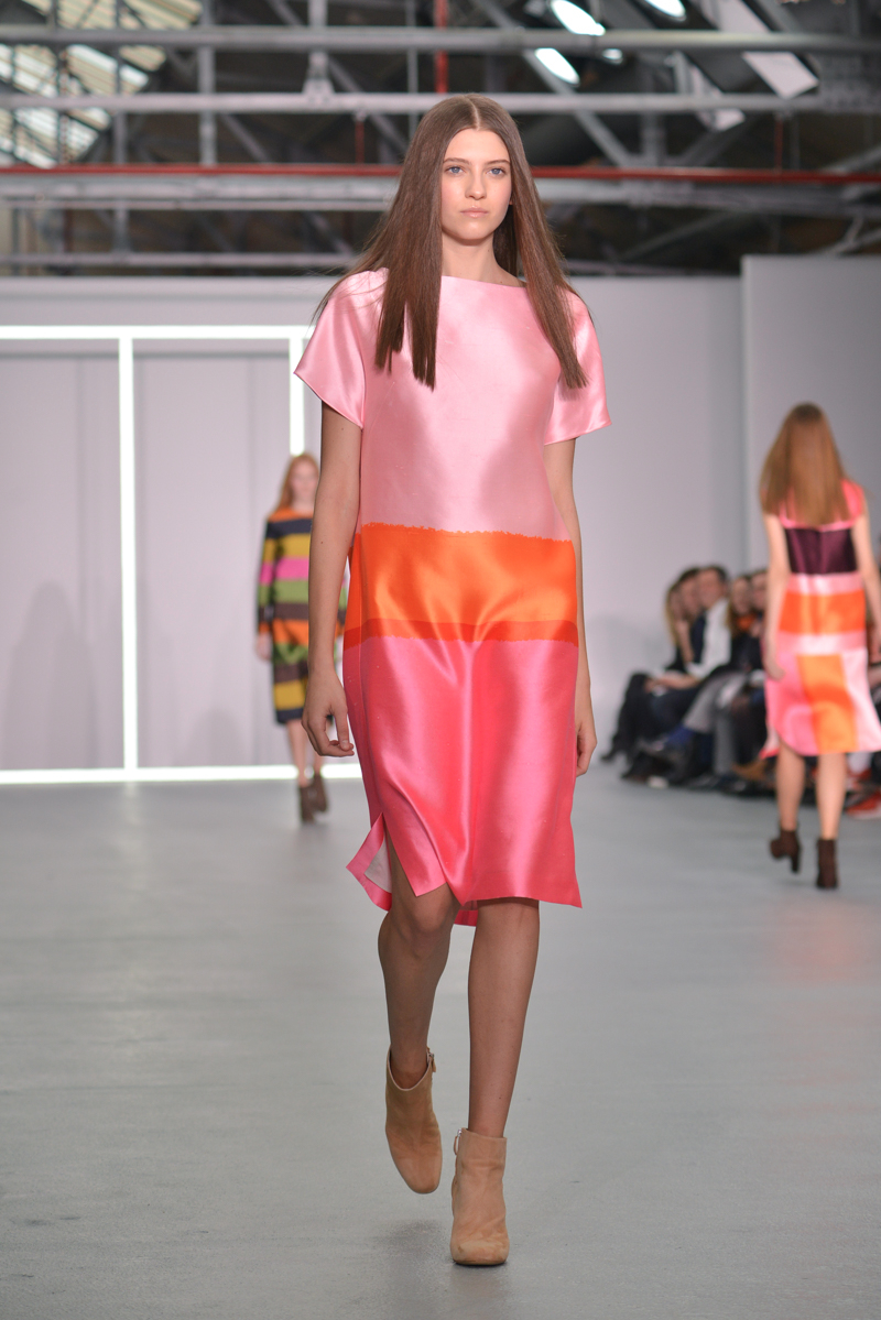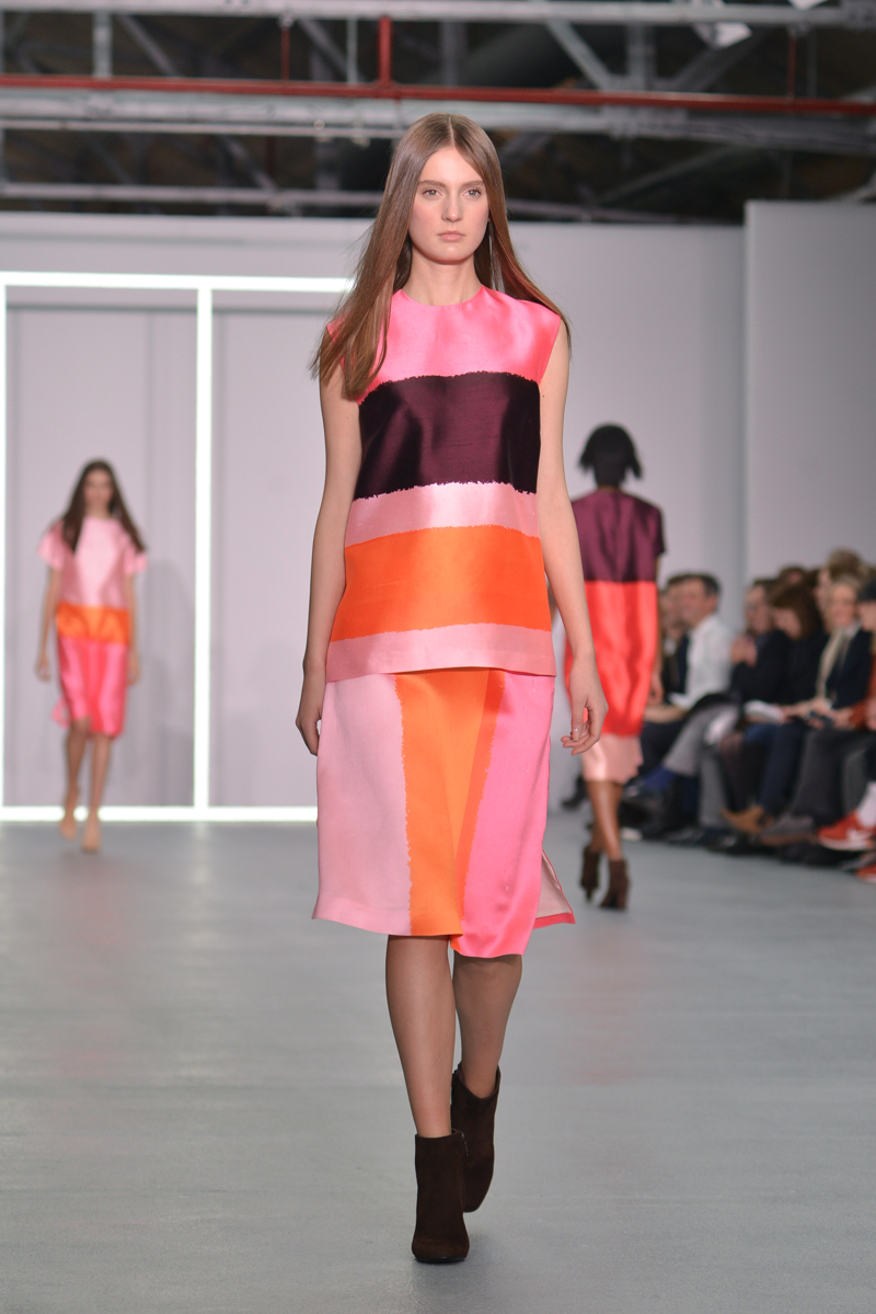 Later on, some dresses had the summer touch with the flamboyant colours and smart tailoring; this set of dresses would be perfect even before autumn/winter 2016! The influence of bold colours is an inspiration many should take, and the dresses that appeared later in the collection were bursting with autumnal hues and added fun loving crayola striped brights.