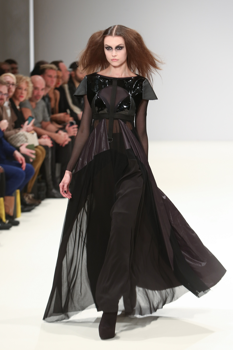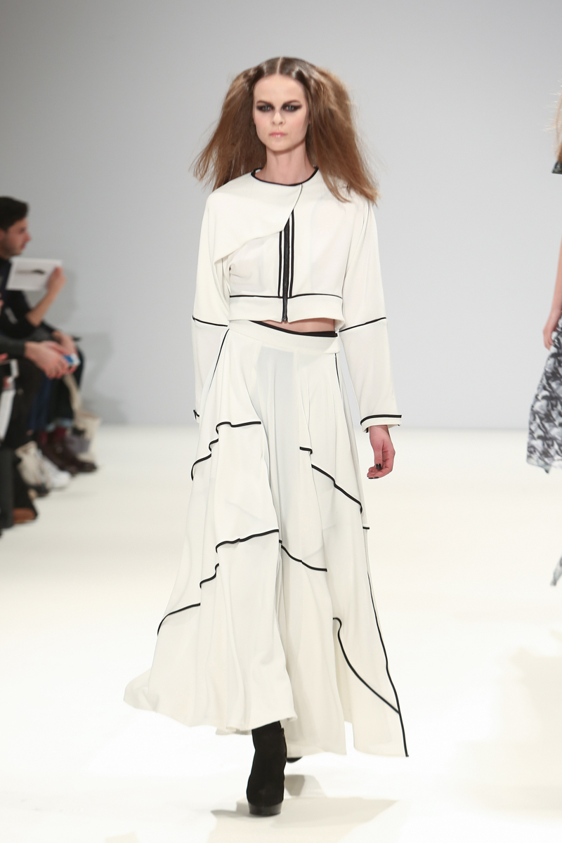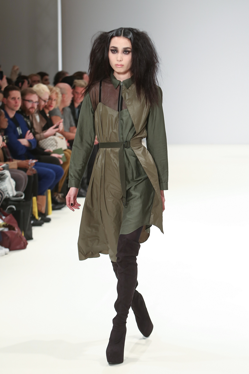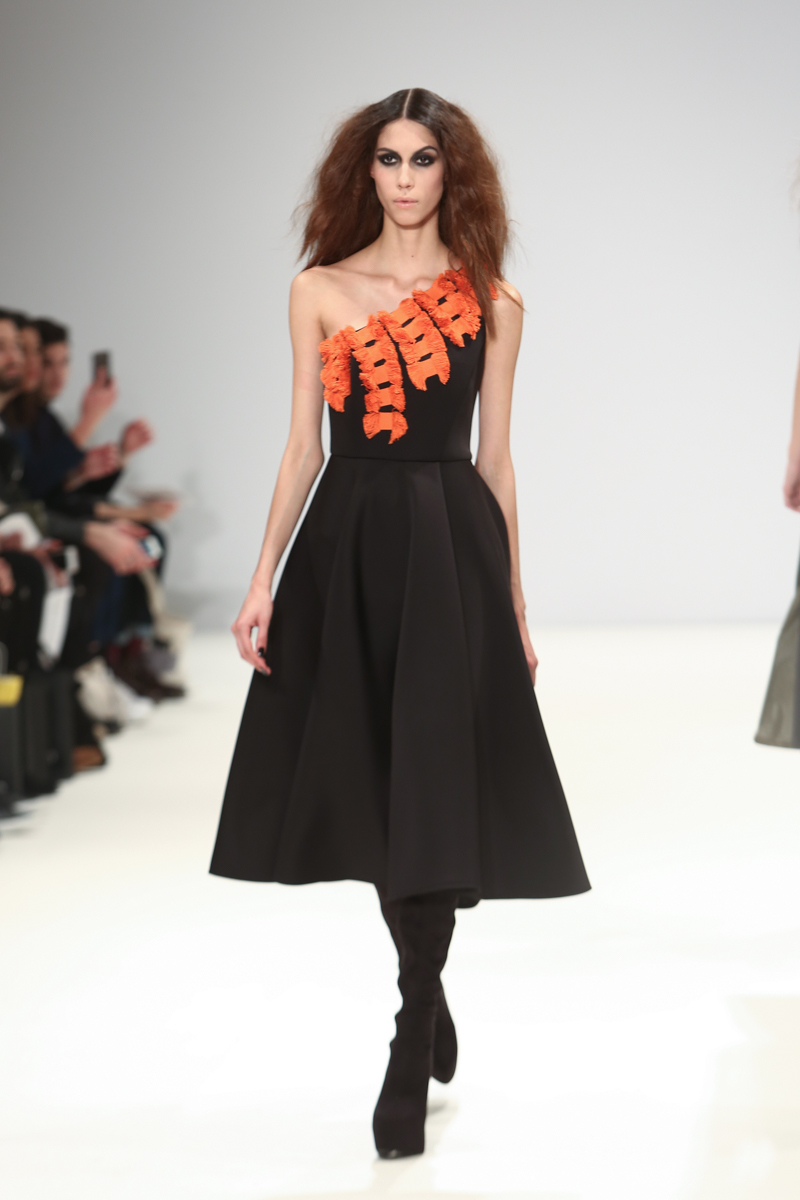 Judy Wu presented a feminine autumn/winter 2016 collection at Freemasons for London Fashion Week. The new looks combined tailoring with fluid draping. Here are our images from the show.