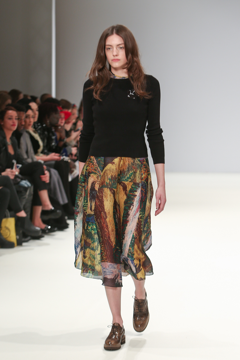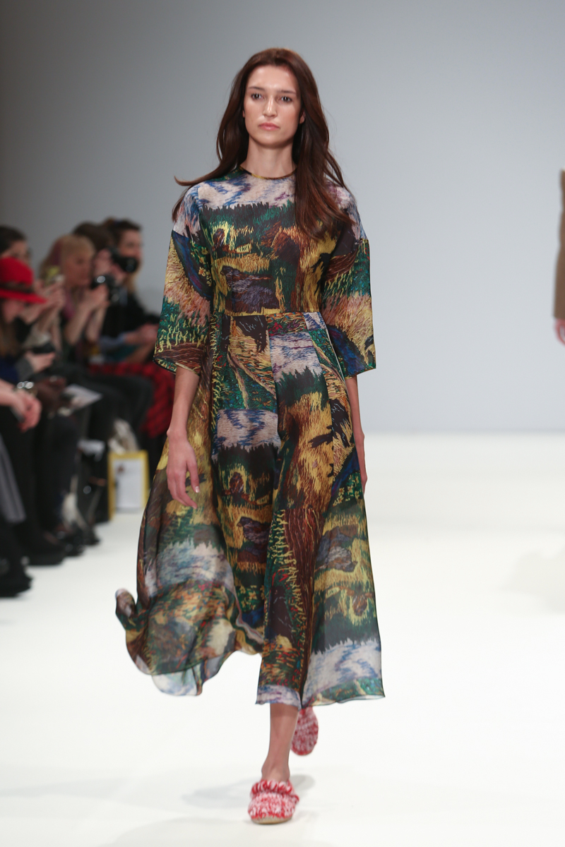 Romantic, feminine and nostalgic – three words to sum up Sabinna’s autumn/winter 2016 collection. It was inspired by her grandmother, Ekaterina, and traditional handcrafting techniques she had taught her. These techniques were seen throughout the collection as jacquard flowers, based on Ekaterina’s crochet, decorated accessories, and a print replication of the same design was seen over organza dresses.