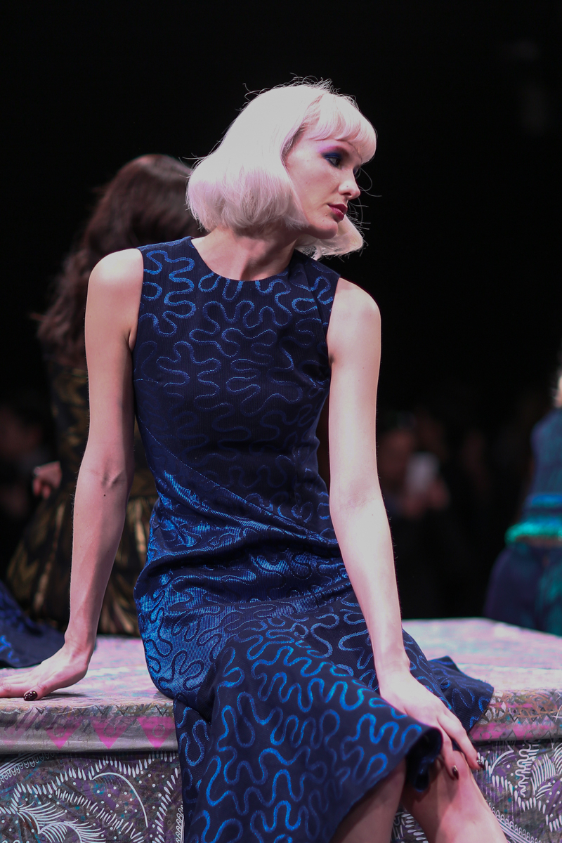 With a reputation of being brave and bold, Zandra Rhodes’ A/W 2016 collection is unswerving in displaying a line that is dynamic in its femininity. A designer who does not shy away from vibrancy, Rhodes’ pioneering prints and garment construction is as strong as it was in the 70s.