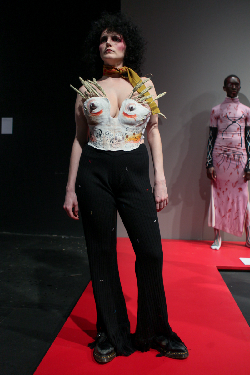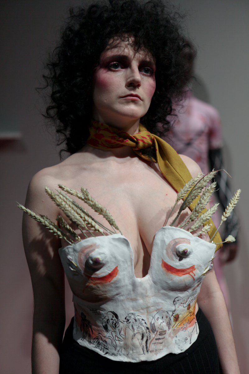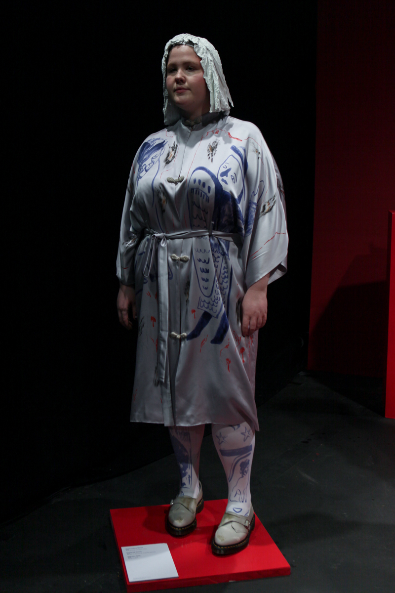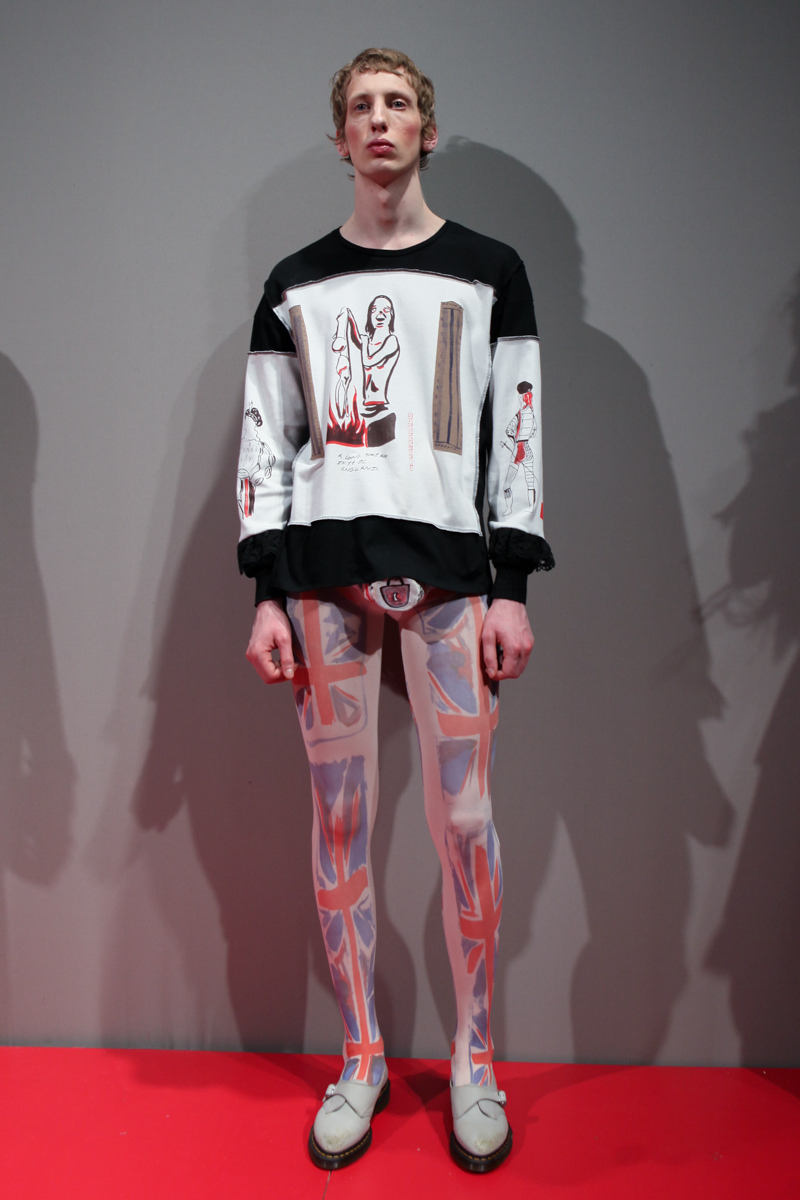 The museum idea of documenting was extended with each garment containing a description, year, and accreditation whilst alongside a series of three films which were intriguing in themselves; collaborations with artist Liv Fontaine, prodigious directorial talent of 13-year-old Duke Brooks and photographer Alice Neale. Barrow highlighted the postmodern concerns of nostalgia and blatant pastiche, by knowingly upturning them to comment on the constant regurgitation and direct references used from subcultures of different fashion eras, so prevalent within visual culture today.