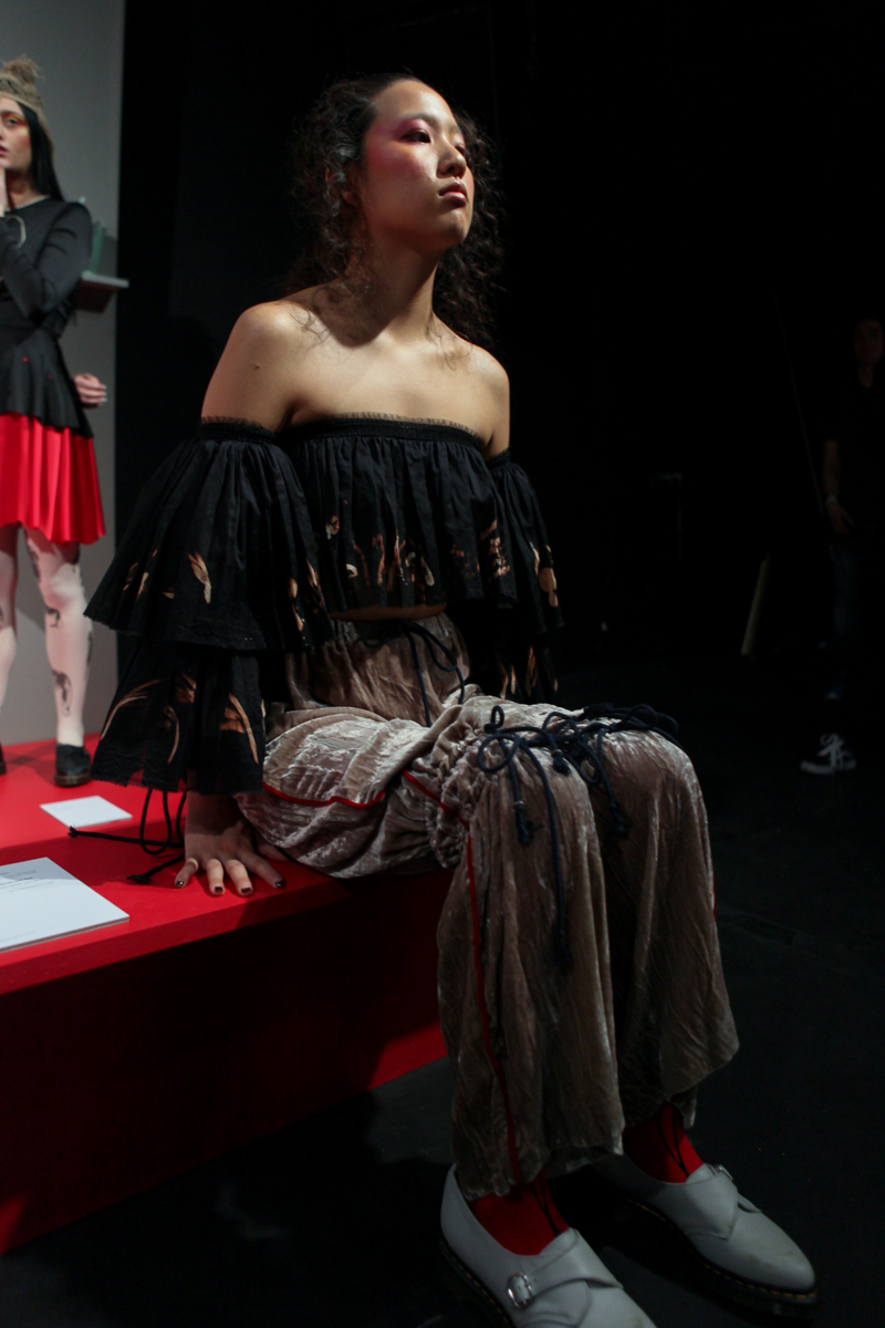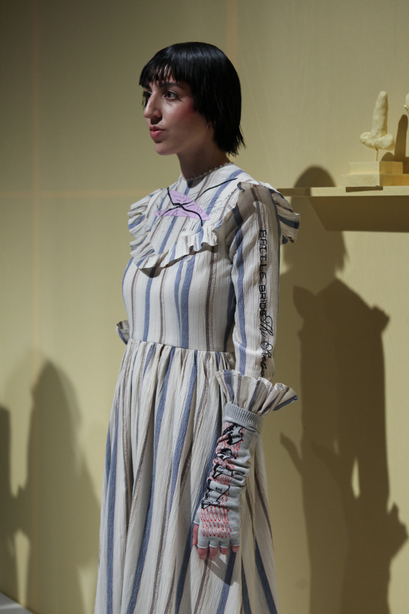 For the Retro-Spective autumn/winter 2016 collection, Claire Barrow took her avid fashion followers to the Institute of Contemporary Arts, to amplify the nostalgia within her latest collection by the very use of a museum-like or “historic” setting. Models of all genders, shapes and sizes, as well as mannequins presented the pieces which felt feminine and yet questioning, seeming to ask of the onlooker far more about our understanding and preconceptions of what it is to be a woman. Barrow asked questions about the fairytale ideal of a wedding dress, about sexuality, loss and anger, though maintained a playful style which also certain theatricality to it.