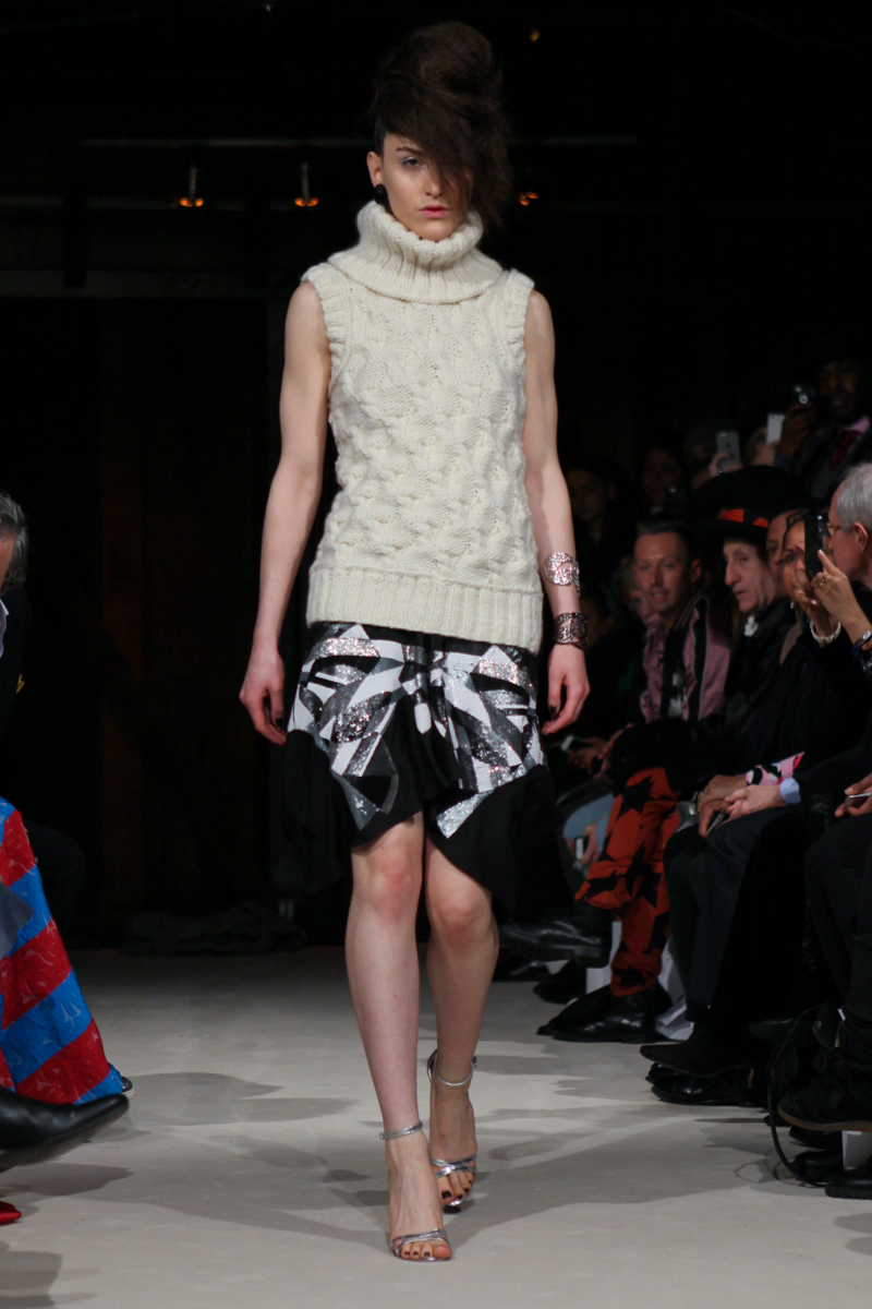 ÉTHOLOGIE by Jasper Garvida presented a futuristic autumn/winter 2016 collection at The Foundation Bar for London Fashion Week. The new looks were knitwear with metallic details. Here are our images from the show.