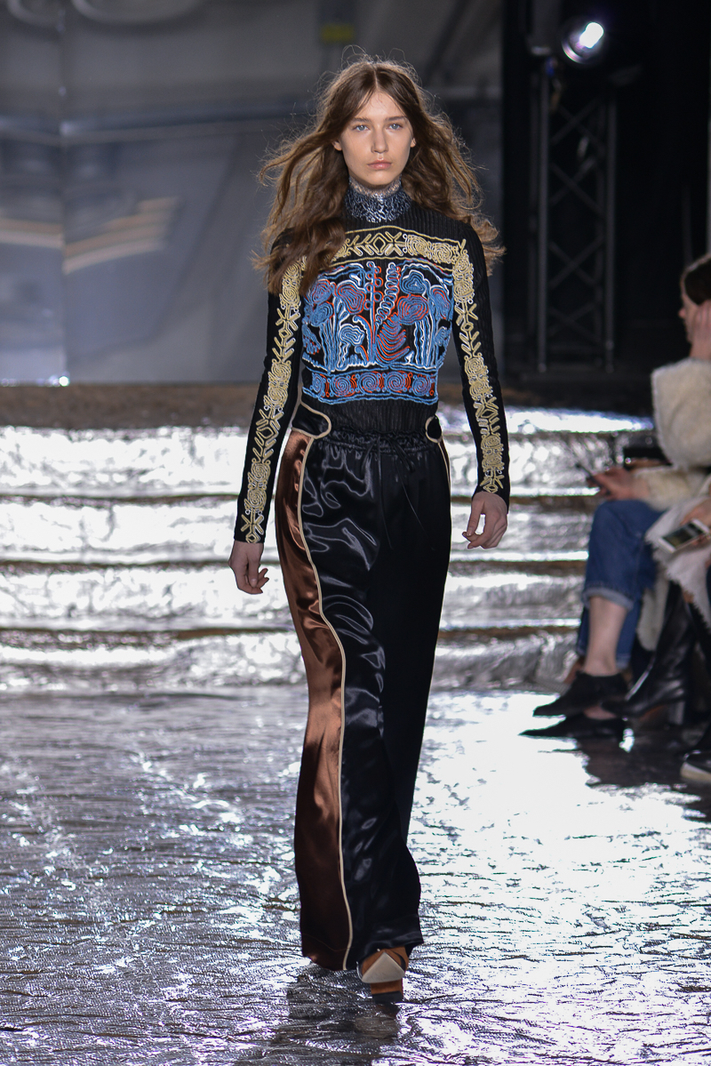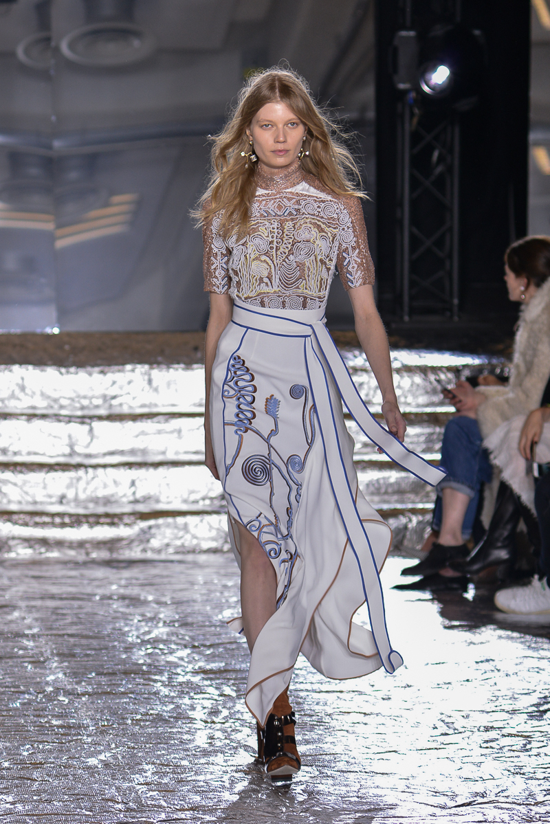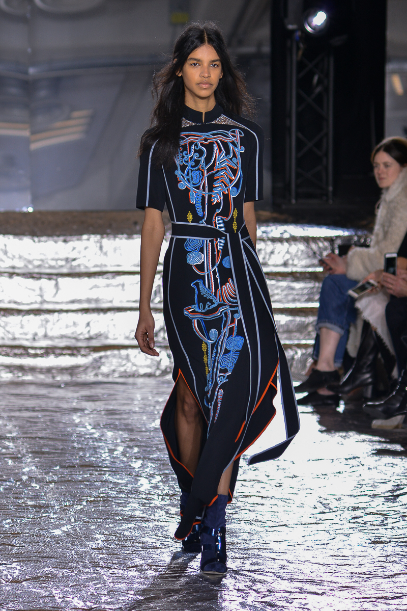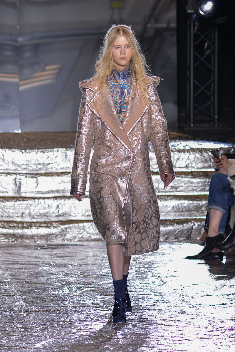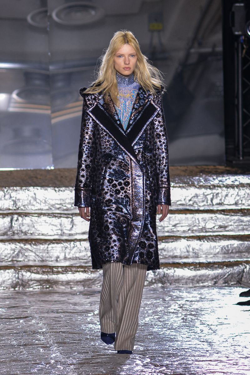 Peter Pilotto presented a chic autumn/winter 2016 collection at Queen Elizabeth II Centre for London Fashion Week. The new looks were delicate, with metallic tones and intricate designs. Here are our images from the show.