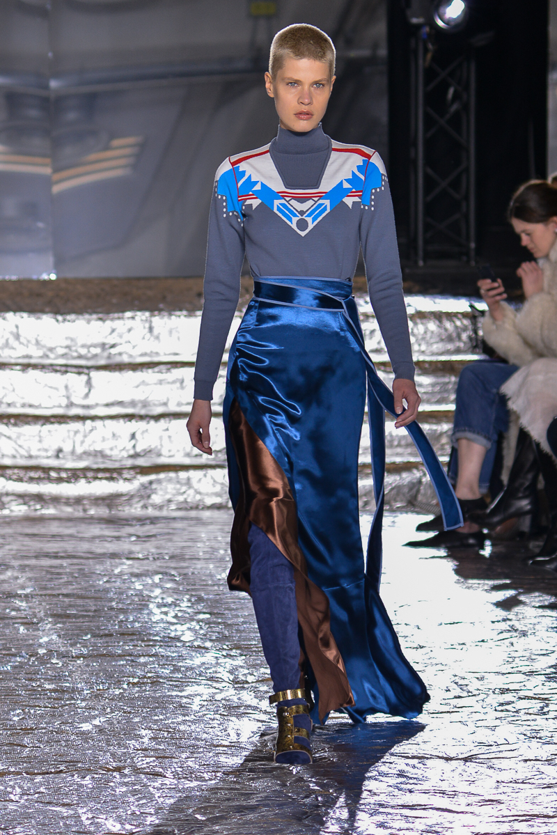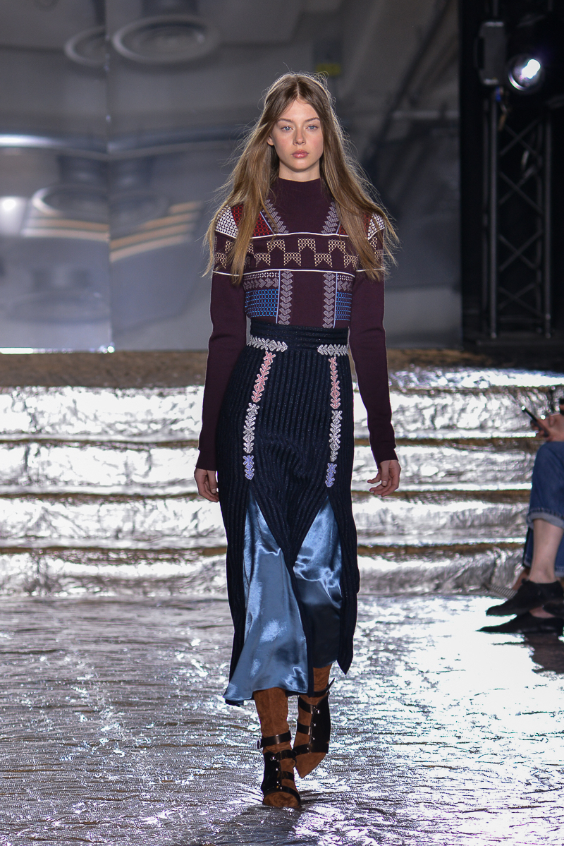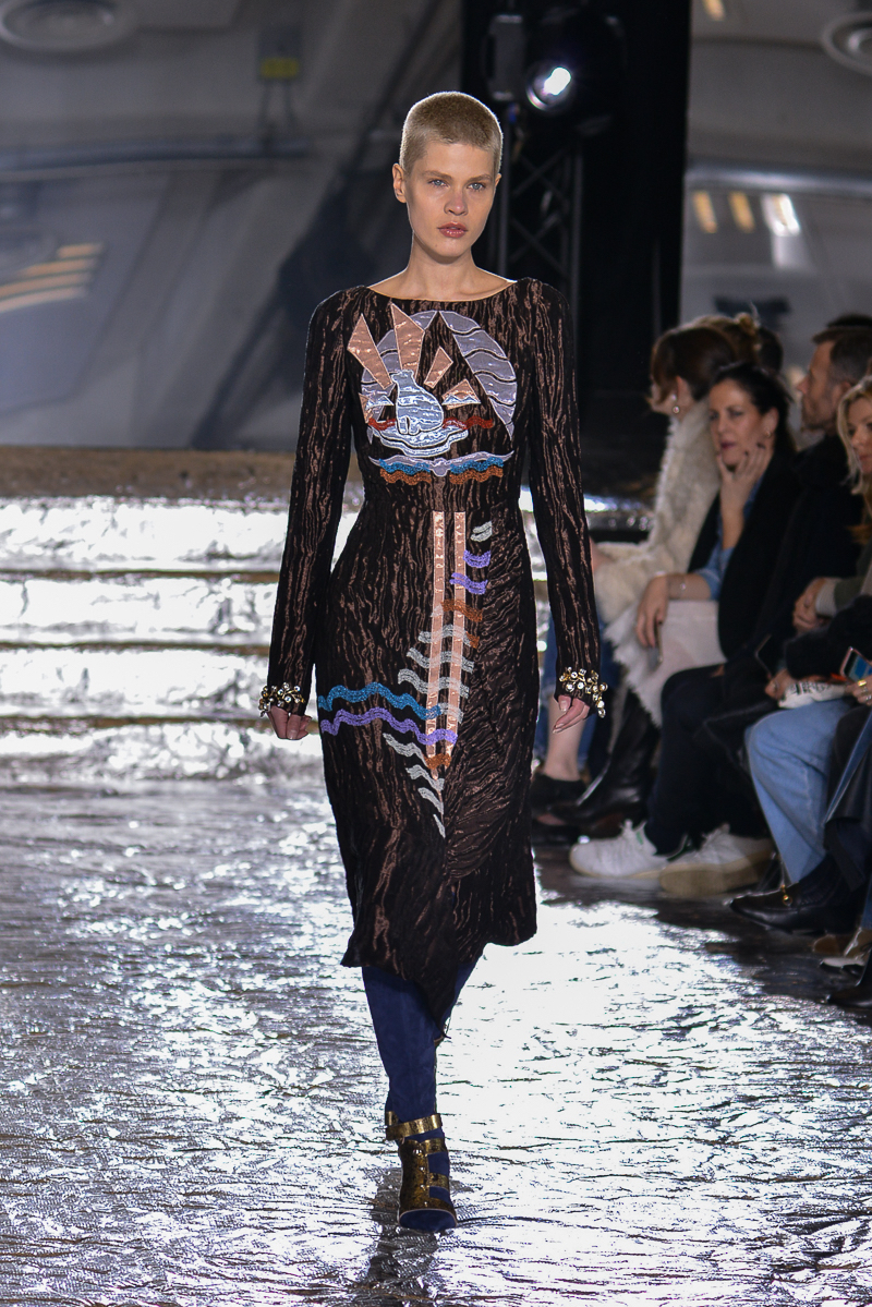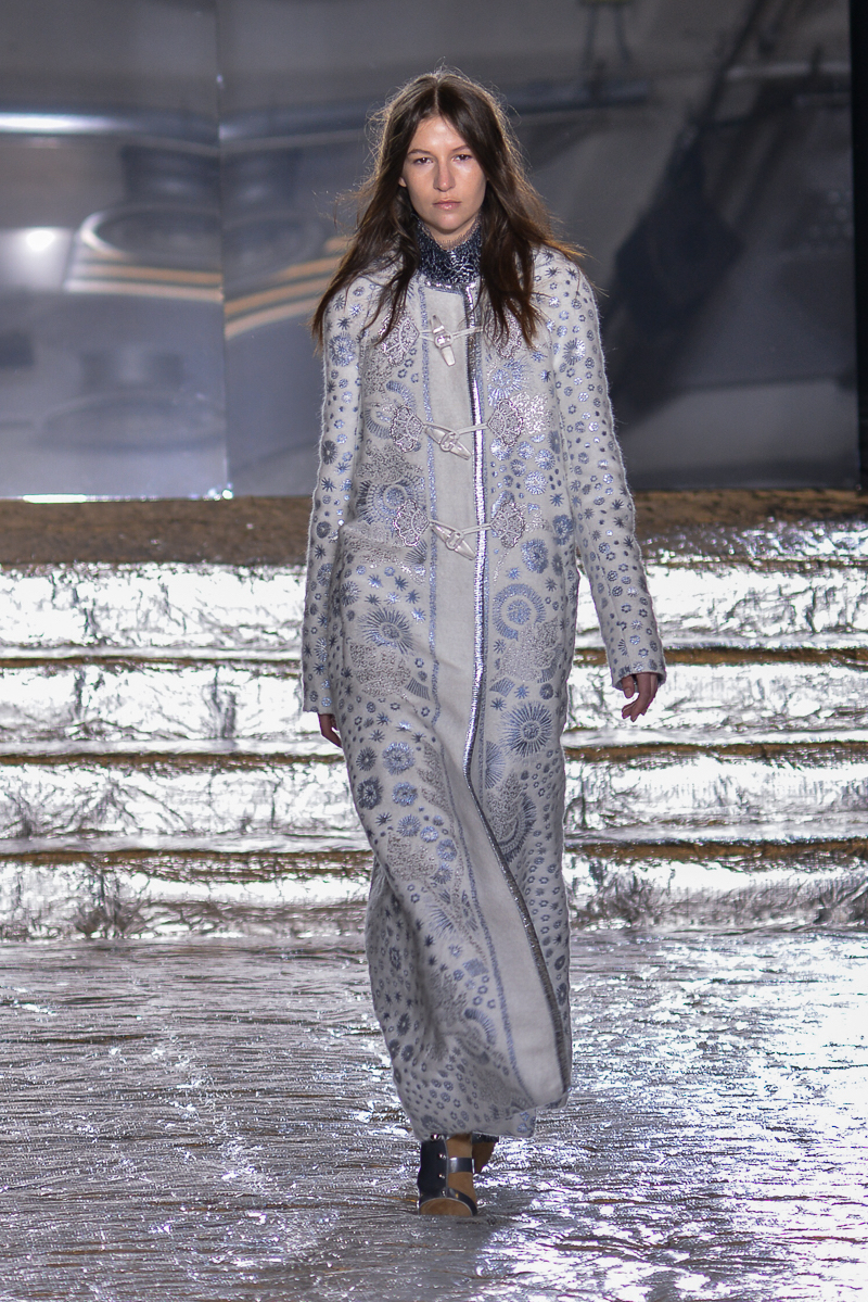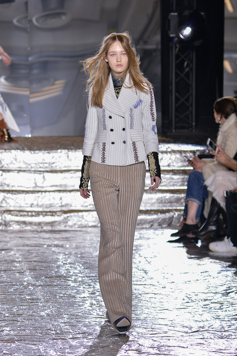 Peter Pilotto presented a chic autumn/winter 2016 collection at Queen Elizabeth II Centre for London Fashion Week. The new looks were delicate, with metallic tones and intricate designs. Here are our images from the show.