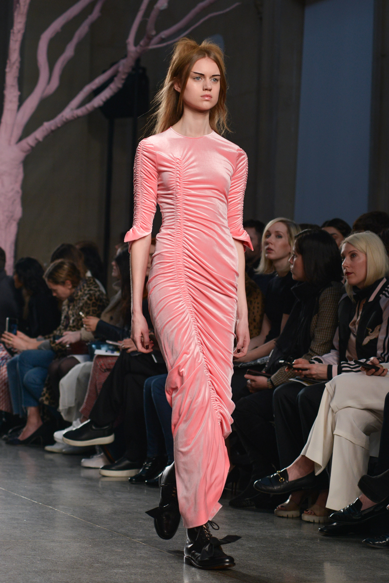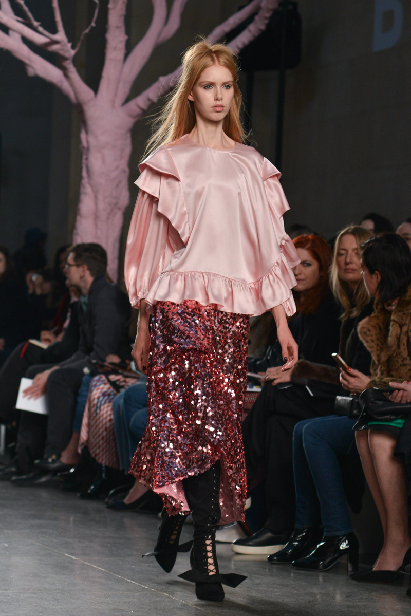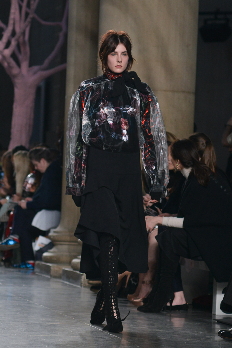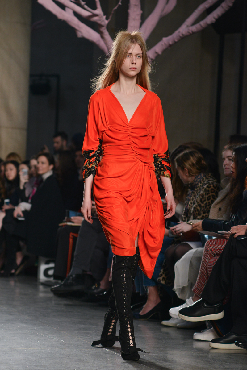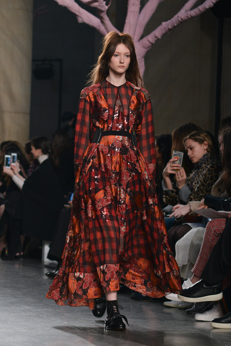 Preen by Thornton Bregazzi presented a glamorous autumn/winter 2016 collection at Topshop Show Space for London Fashion Week. The new looks were dark florals and layered fabrics. Here are our images from the show.